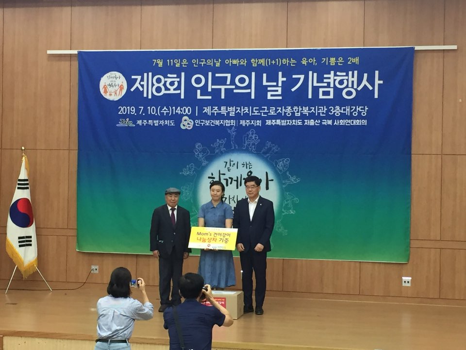특히, 이날 기념식에서는 국민건강보험공단 제주지사 김희웅 지사장과 저희 협의회 부형종 회장직무대행이 임신출산을 축하하는 나눔상자를 전달하는 순서를 갖기도 했습니다.
