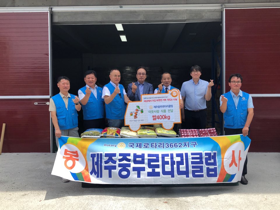 제주중부로타리클럽(회장 강대성)에서는 7. 12일 우리 협의회에서 운영중인 기부식품물류센터를 방문하여 이웃 사랑의 실천으로 쌀400kg, 계란40판을 기부해 주셨습니다. 매년 정기적으로 쌀을 기부하고 있는 제주중부로타리클럽 회장님과 회원님들에게 감사의 마음을 전해드립니다. 감사합니다.