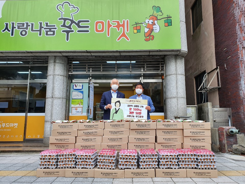 이웃사랑 쌀 500kg와 계란 50판을 전달해 주셨습니다.