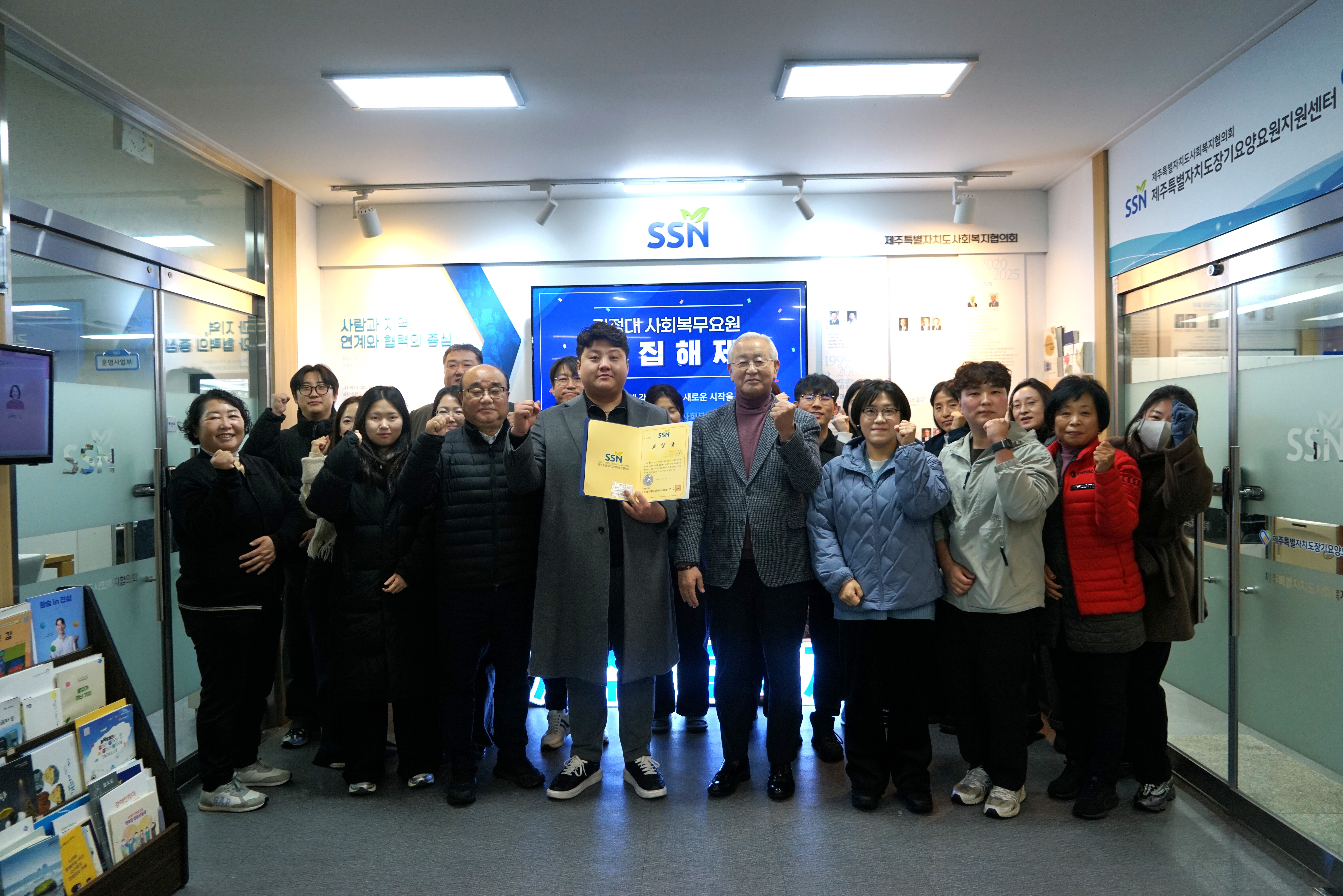 사회복지협의회장 표창장을 수여하고 협의회 직원 모두가 축하를 전했습니다.