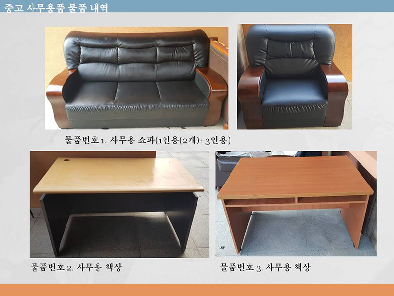 물품번호 1. 사무용 쇼파(1인용(2개)+3인용)