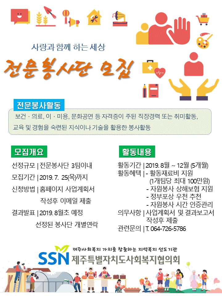 우리협의회에서는 2019년 사회복지자원봉사 전문봉사단(지역사회봉사단)을 모집합니다.