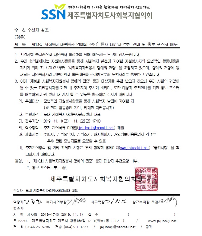 제10회 사회복지자원봉사 명예의 전당 등재 대상자 추천 안내