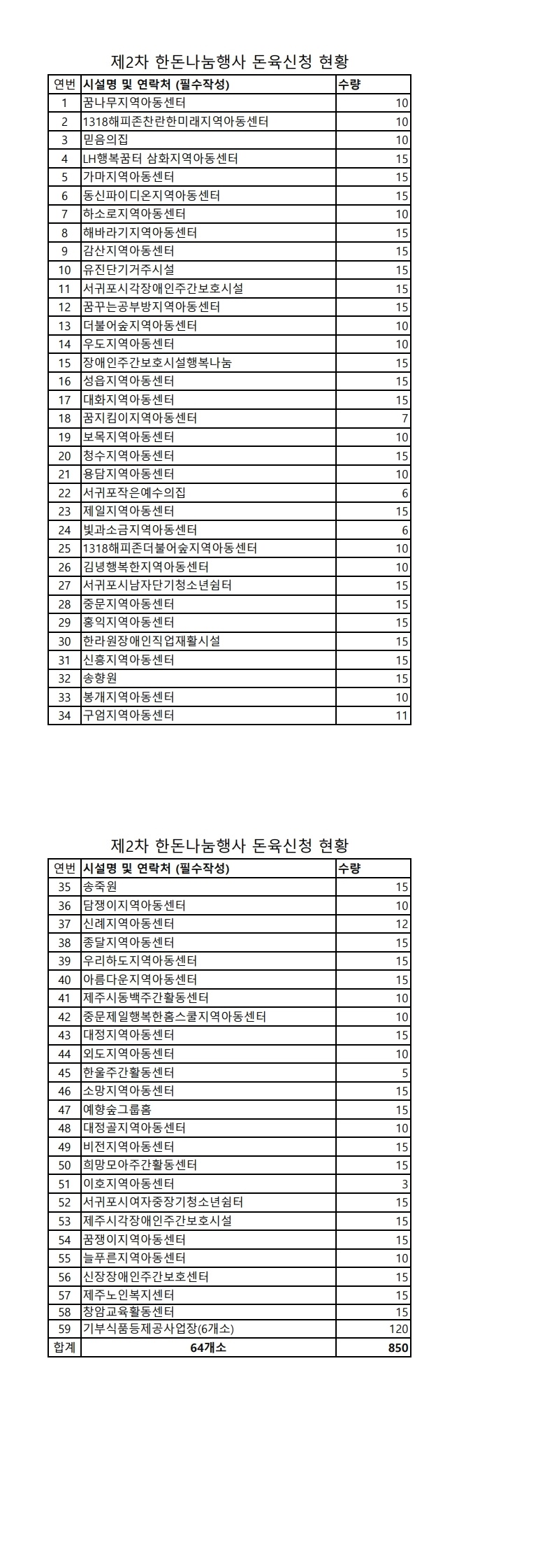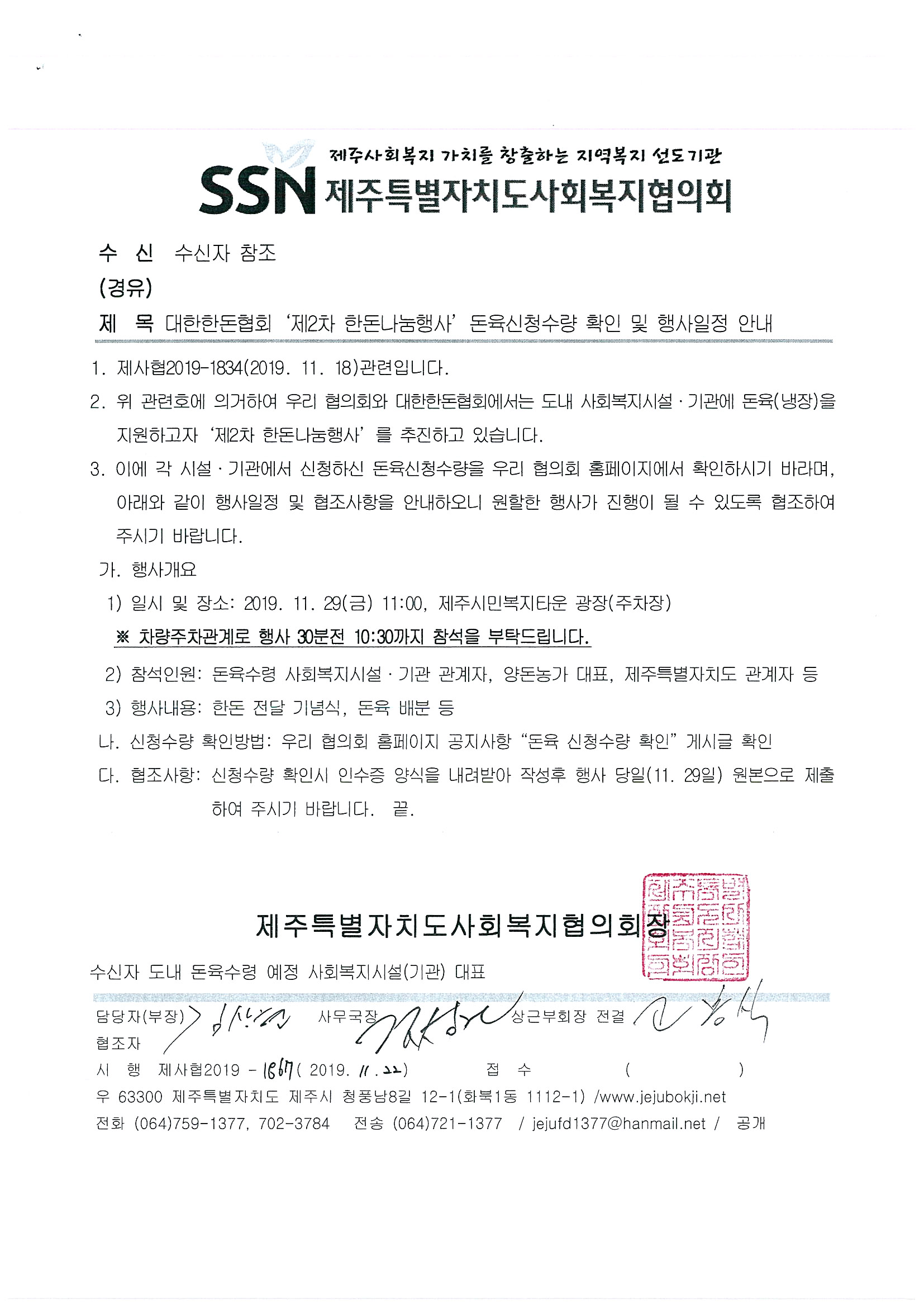 대한한돈협회 제2차 한돈나눔행사 돈육신청수량 확인 및 행사일정 안내