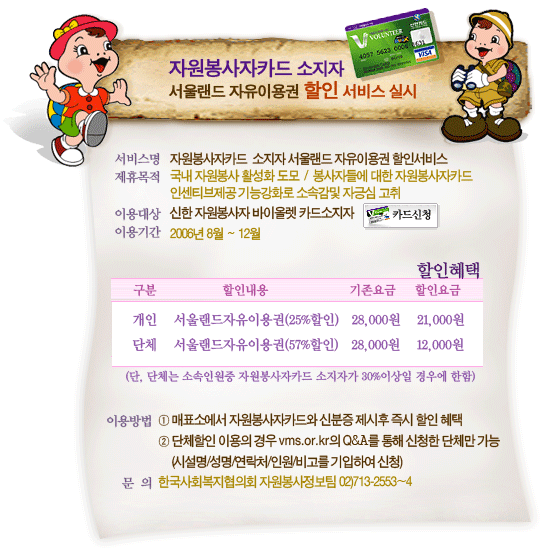 자원봉사자카드 소지자 서울랜드 자유이용권 할인 서비스 실시 안내
