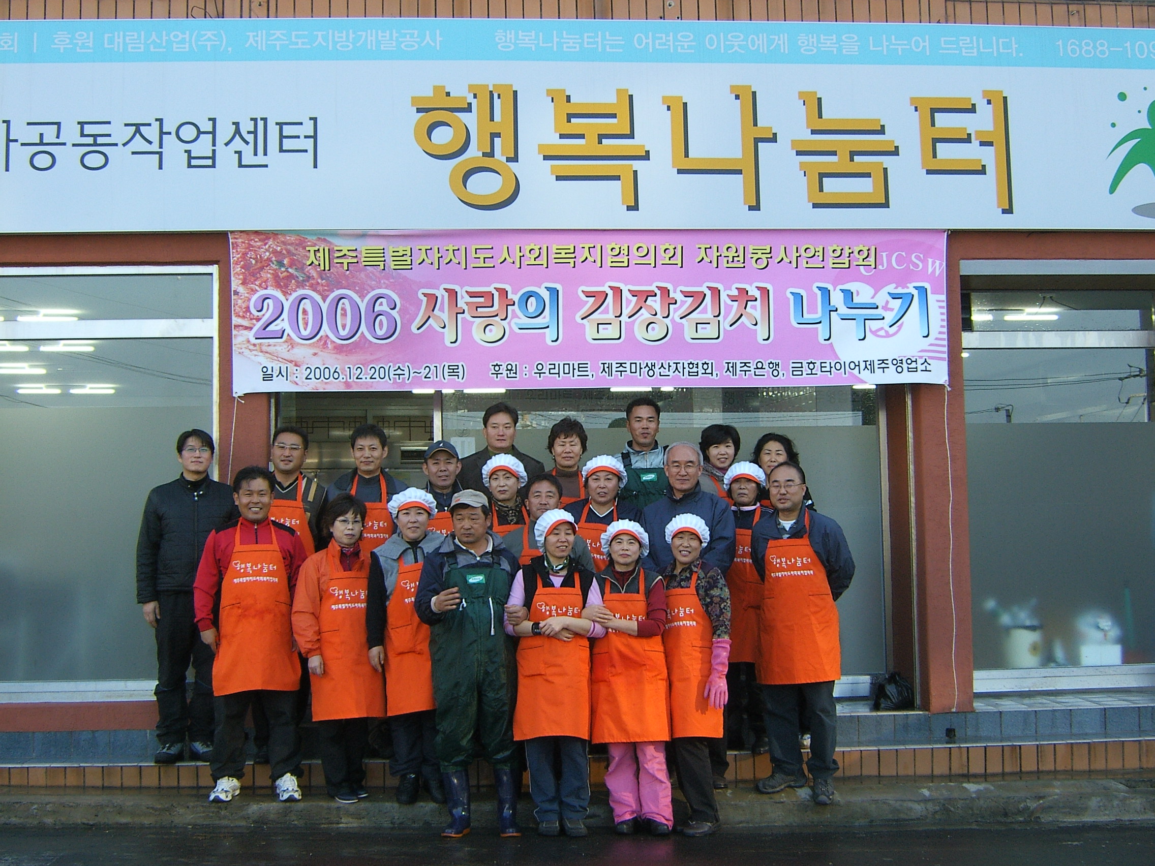 12. 21(목) 우리 협의회 소속 자원봉사연합회에서는 봉사자, 지역아동센터 선생님 등 60여명이 참석한 가운데 '2006 사랑의 김장김치 나누기' 행사를 개최하였습니다.