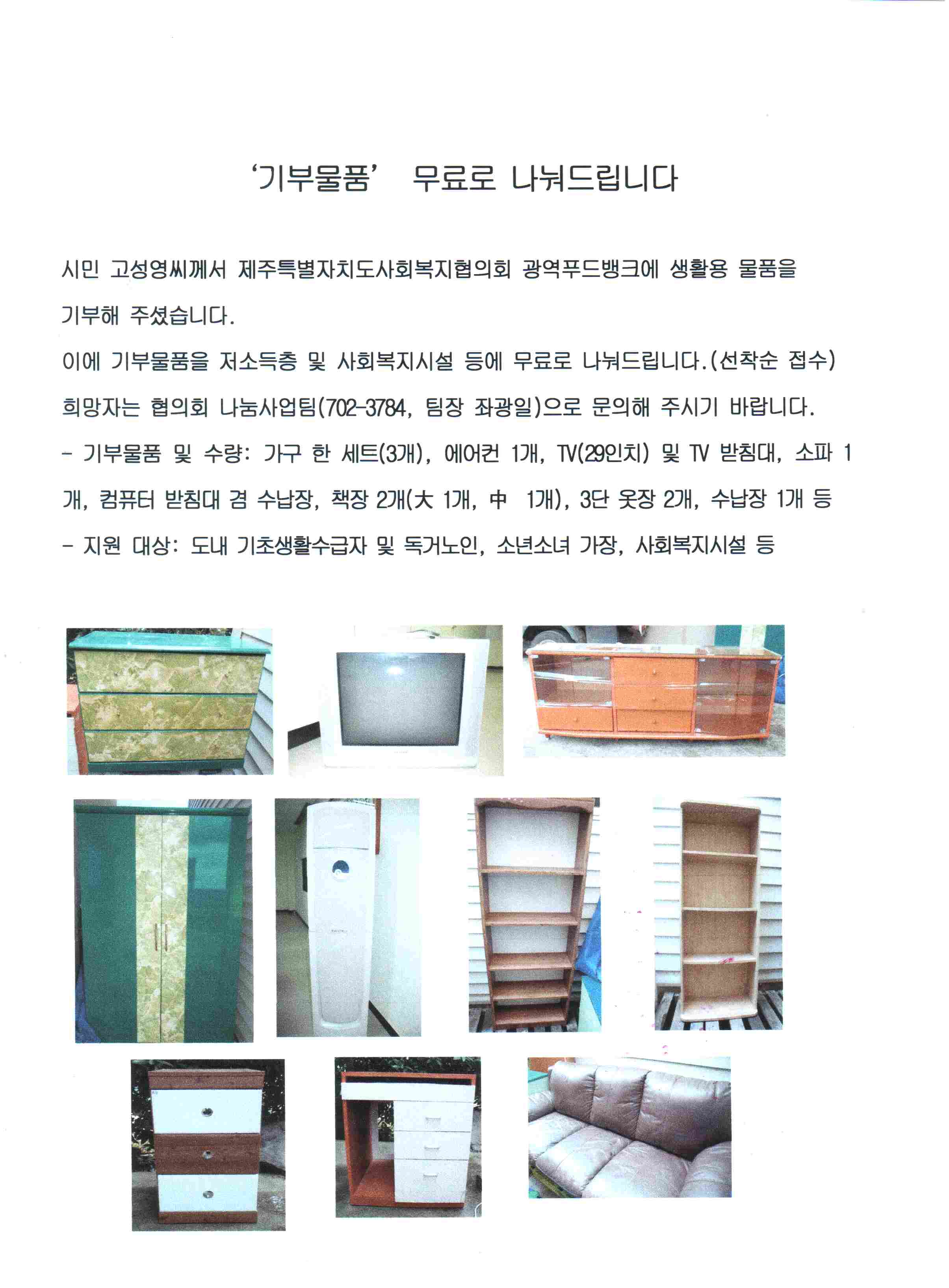 3월 22일 현재 남아 있는 가구 1개를 무료로 가져가실 분은 협의회(720-3784)로