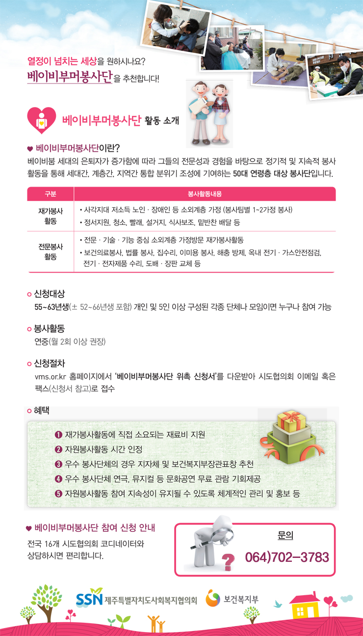 - 베이비부머세대 중심으로 구성된 5인 이상의 단체, 모임 등