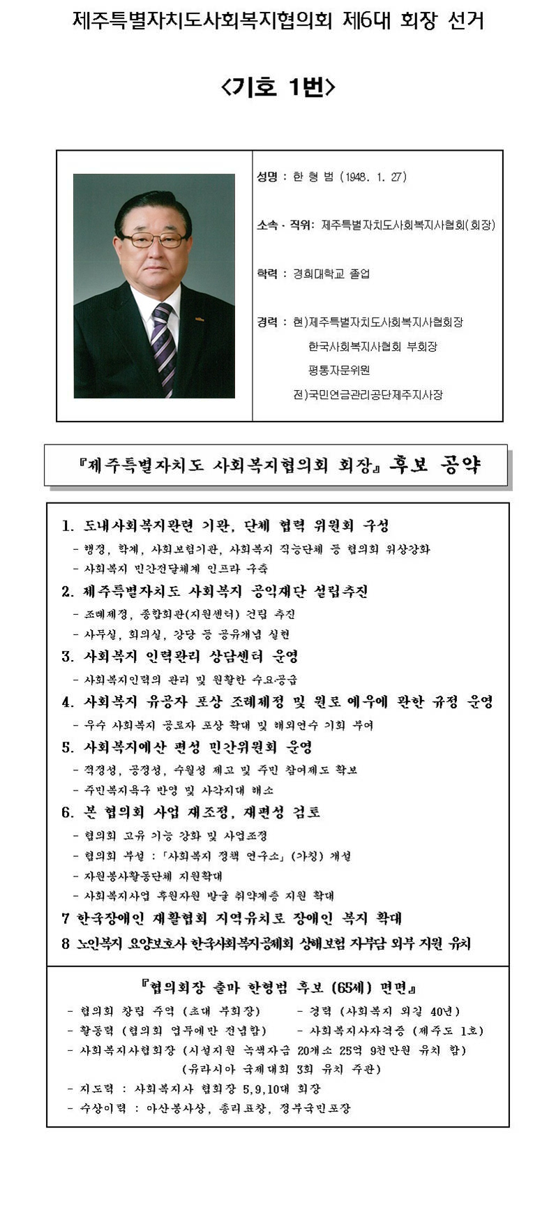 <기호 1번> 한형범 후보 공약사항