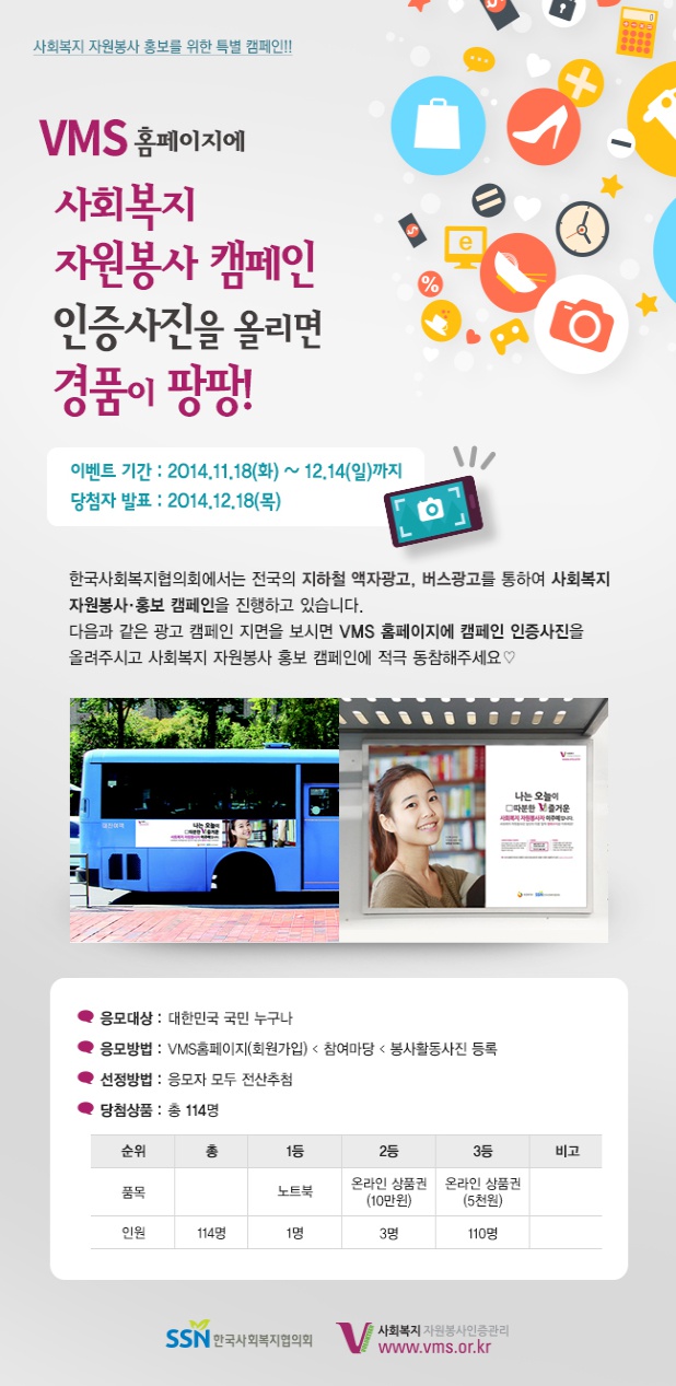응모방법 : VMS 홈페이지(회원가입) > 참여마당 > 봉사활동사진