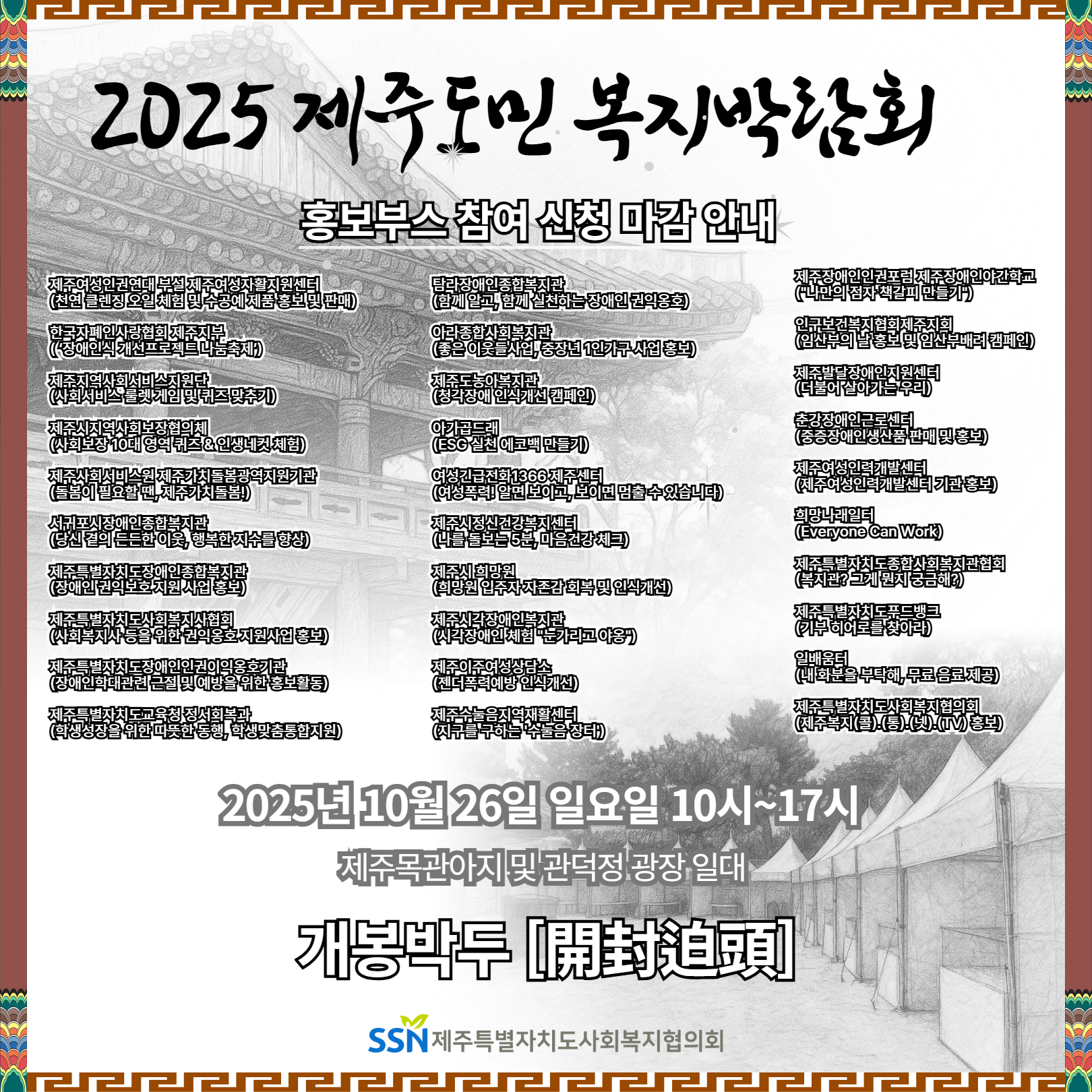 2025 제주도민 복지박람회 홍보부스 참여 기관 모집마감 안내