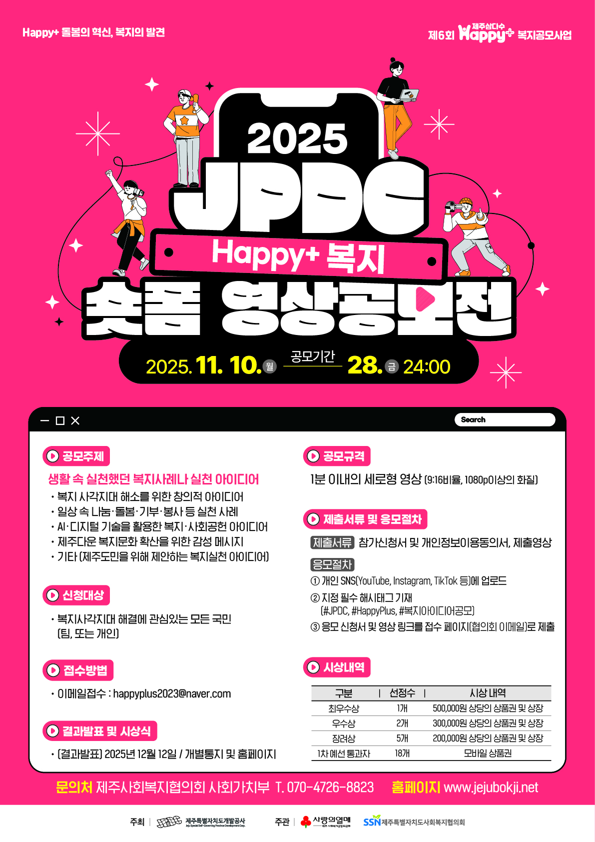 '2025년 JPDC Happy+복지 숏폼영상 공모전' (2025. 11. 10.~11.28.)
