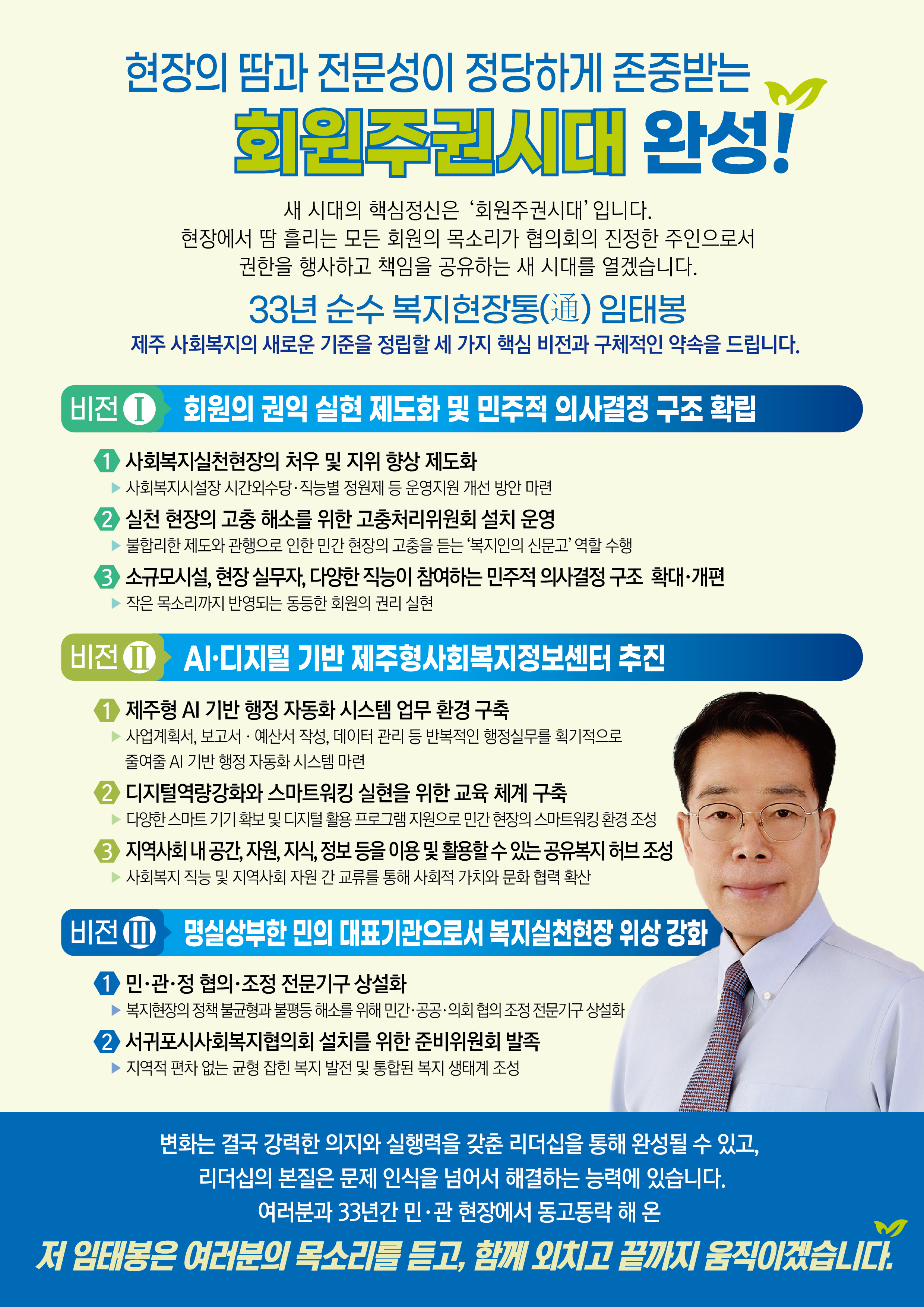 제10대 회장선거 후보자 공약사항 <기호 1번> 임태봉 후보자