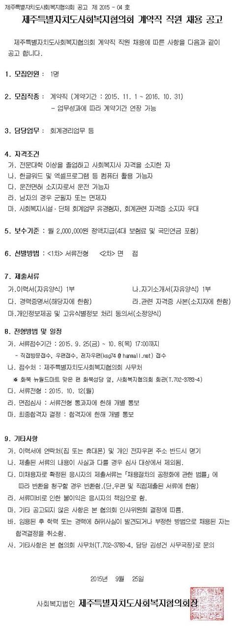 계약직 직원 채용 공고