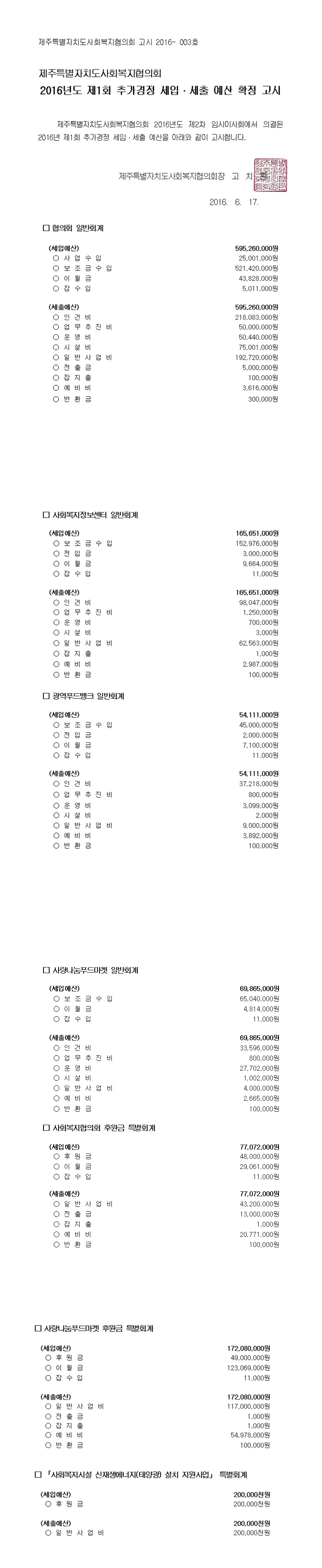 2016년도 제1회 추가경정 세입세출 예산 고시