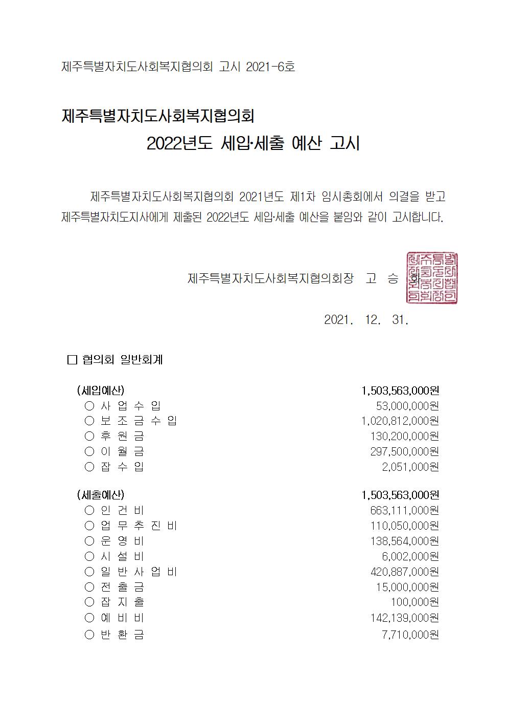 2022년도 세입세출 예산고시