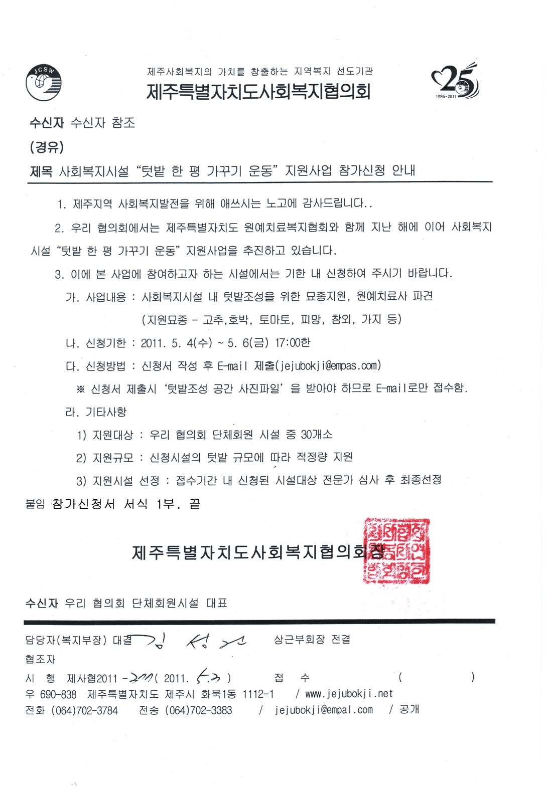 사회복지시설 "텃밭 한 평 가꾸기 지원사업" 신청안내