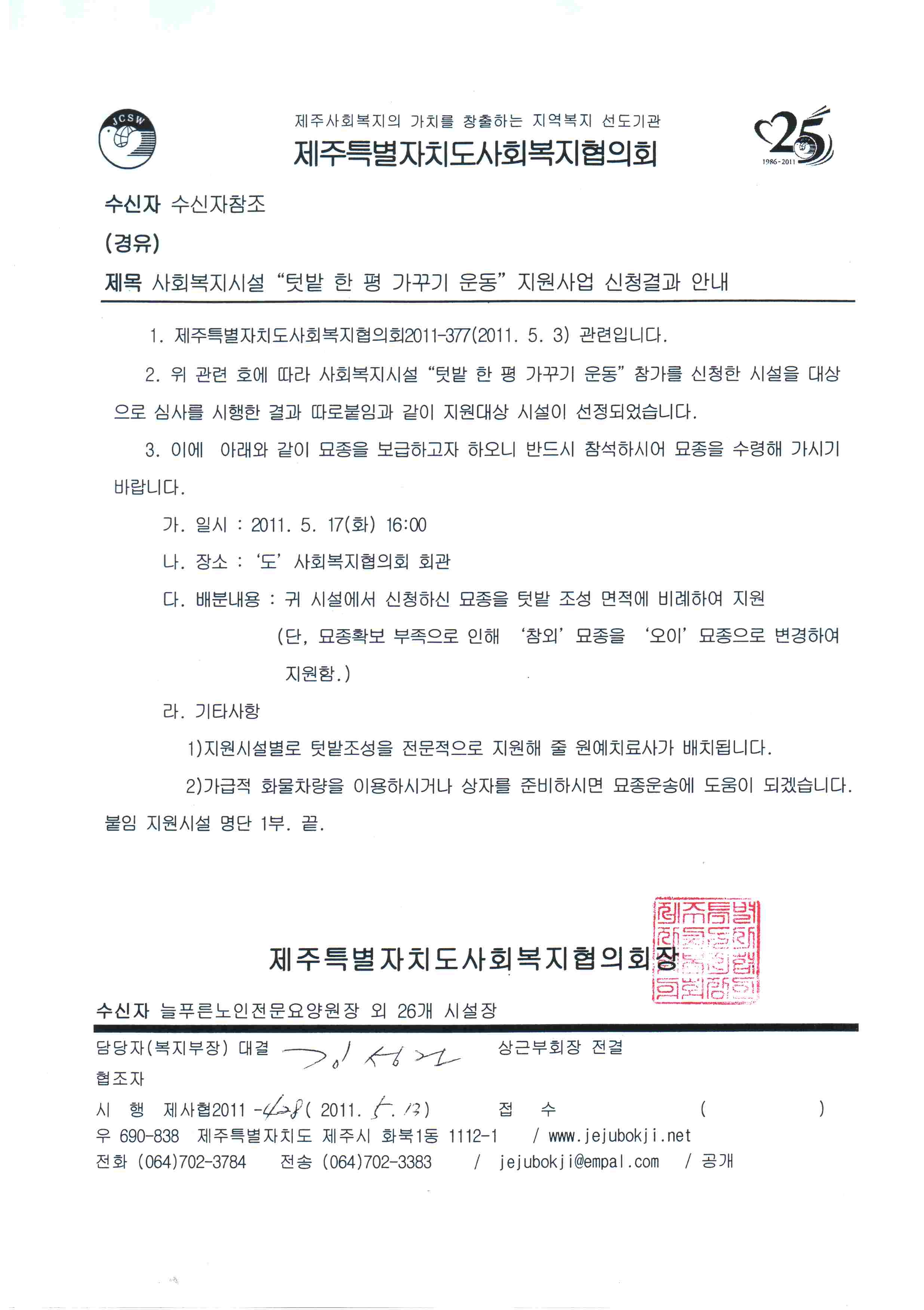 사회복지시설 "텃밭 한 평 가꾸기 운동"지원사업 신청결과 안내