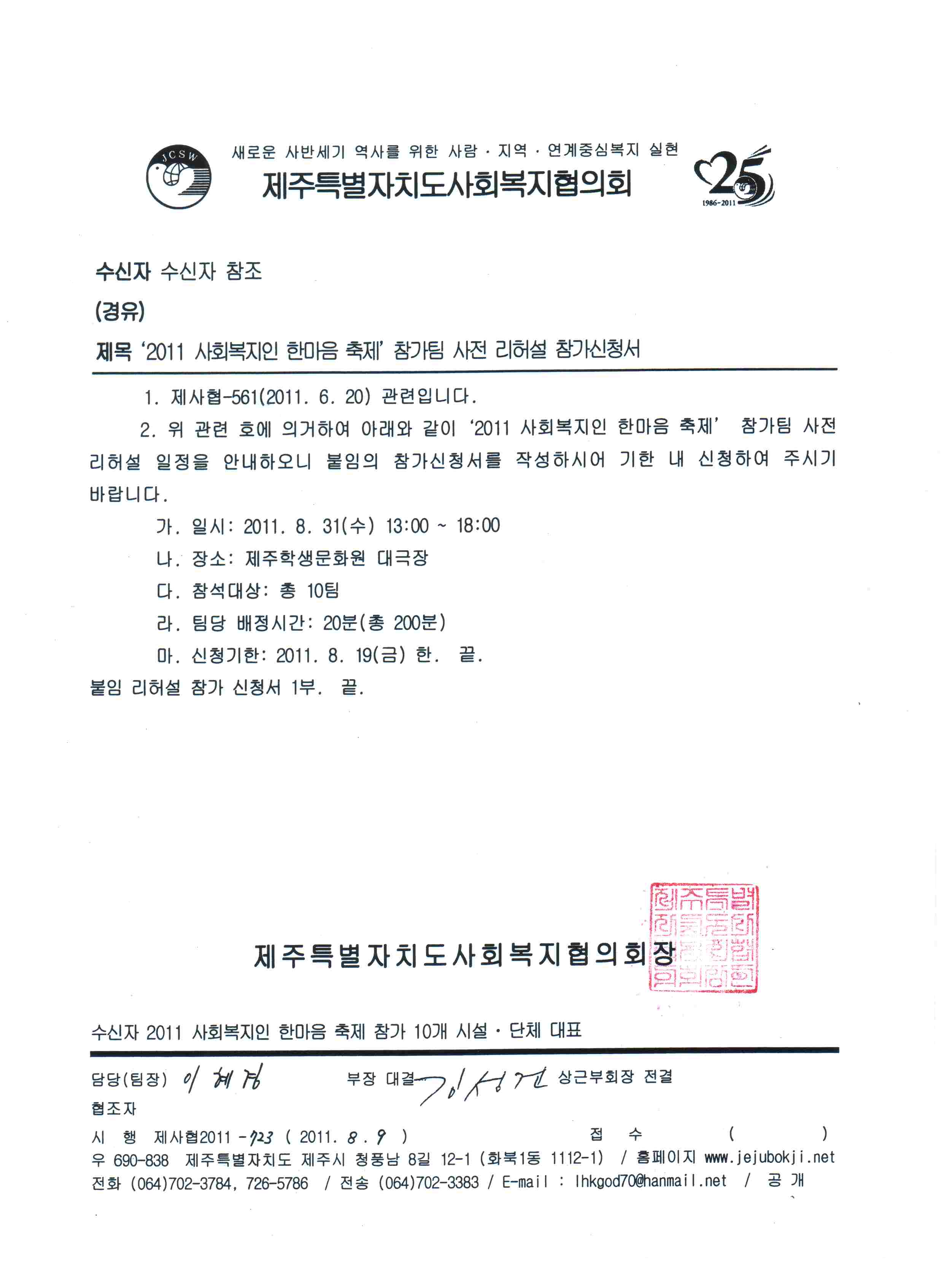'2011 사회복지인 한마음 축제' 참가팀 사전 리허설 참가신청서