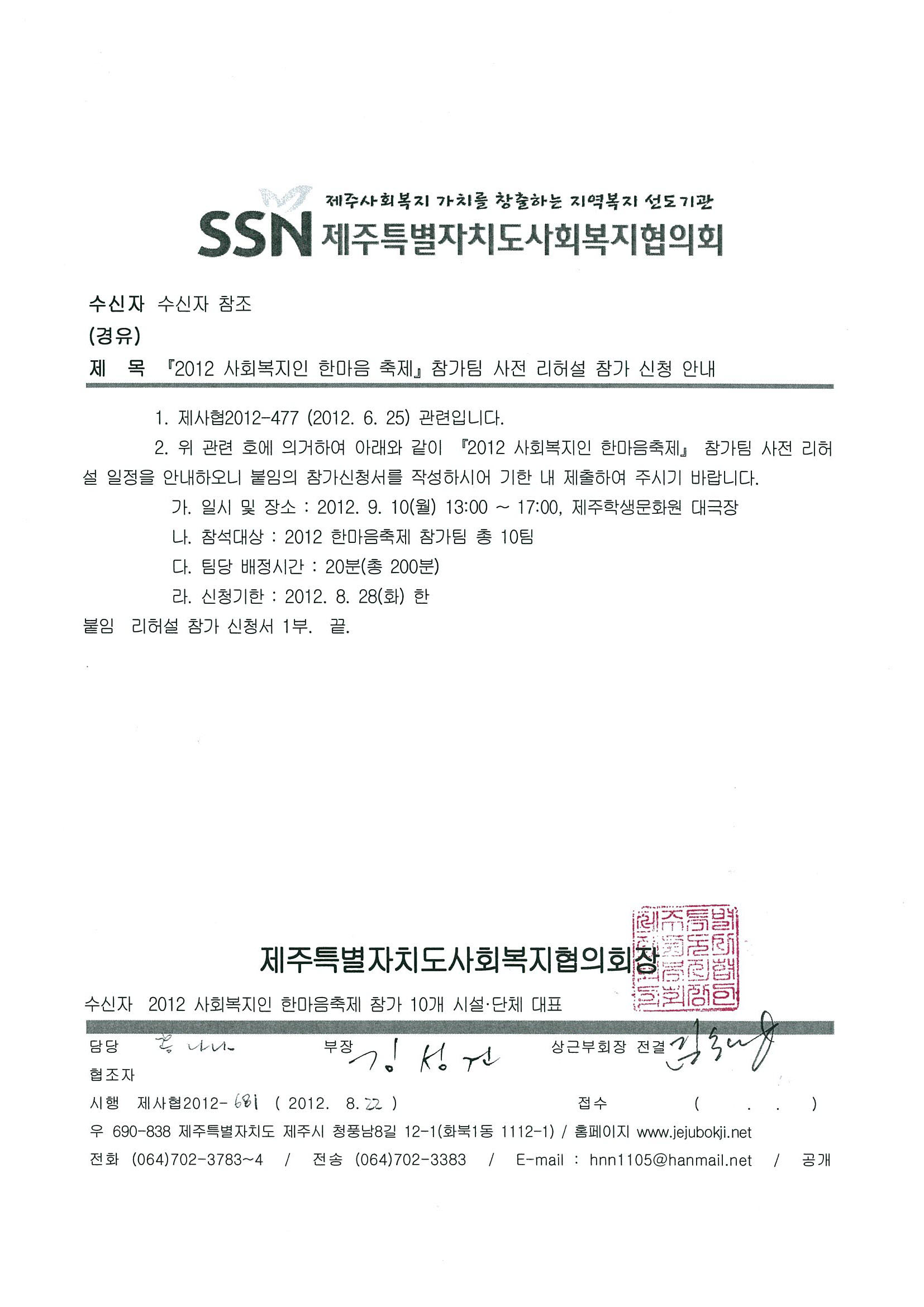 2012 사회복지인 한마음축제 참가팀 사전 리허설 참가 신청 안내