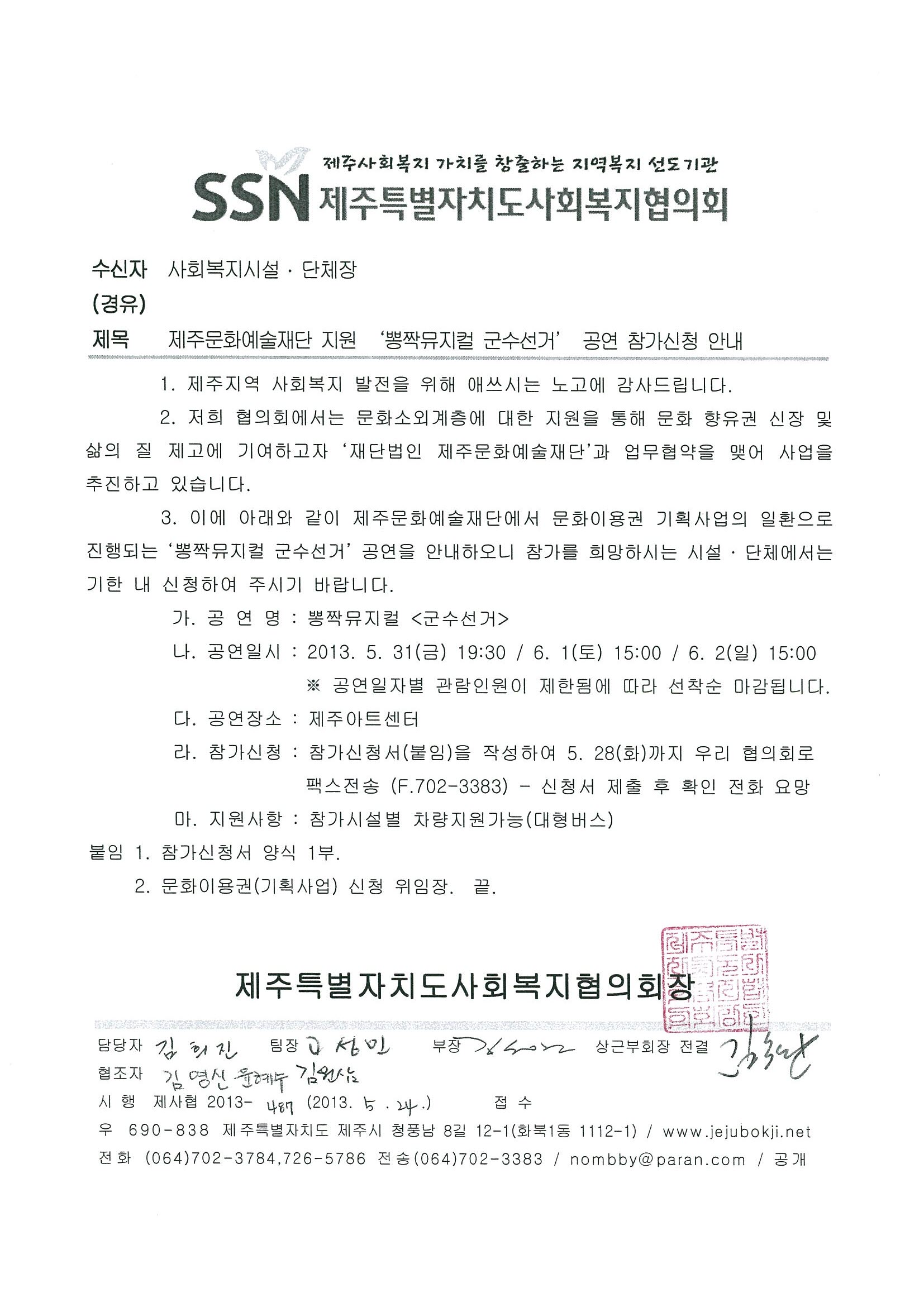 '뽕짝뮤지컬 군수선거' 공연 참가신청 안내