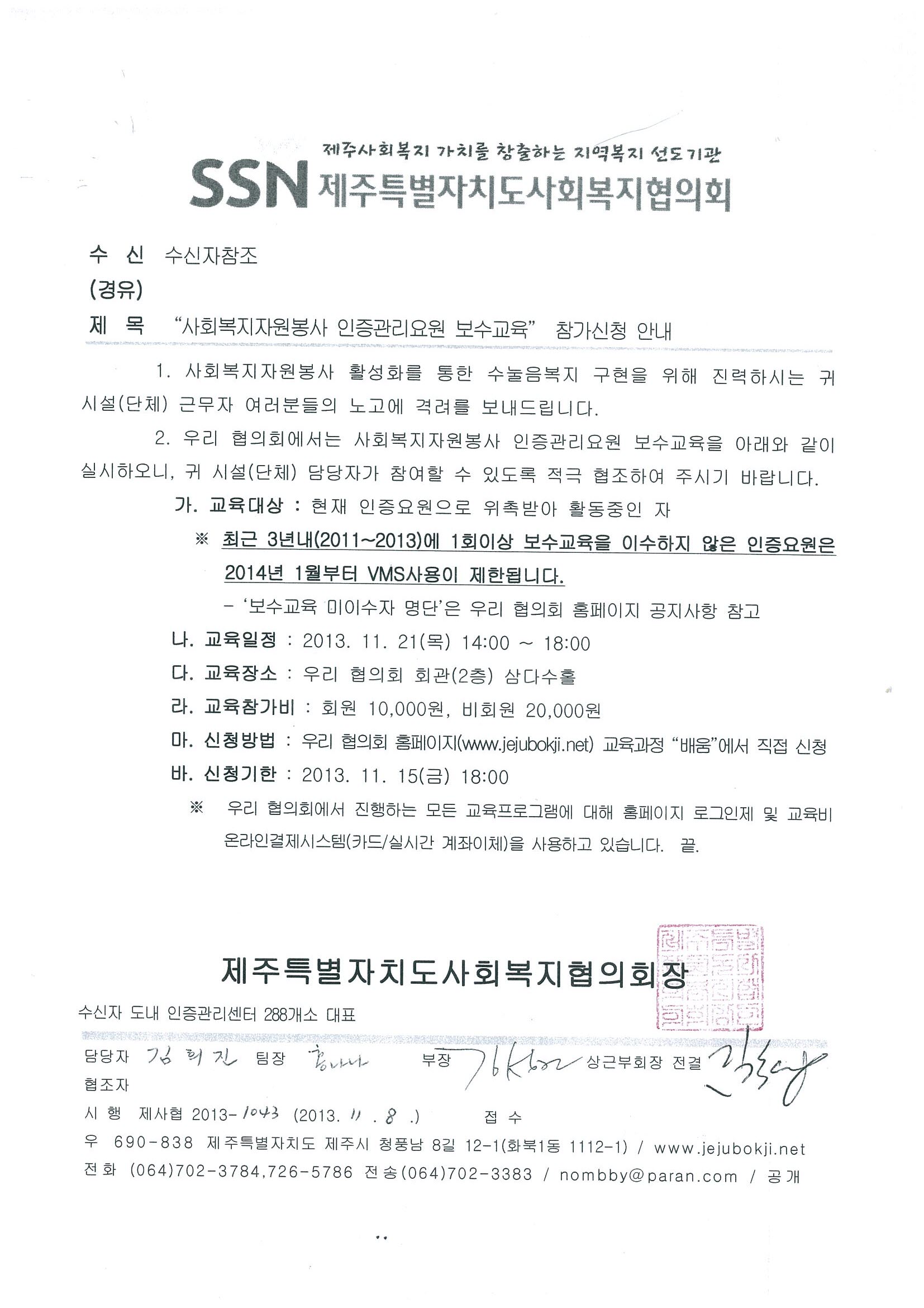 "사회복지자원봉사 인증관리요원 보수교육" 참가신청 안내