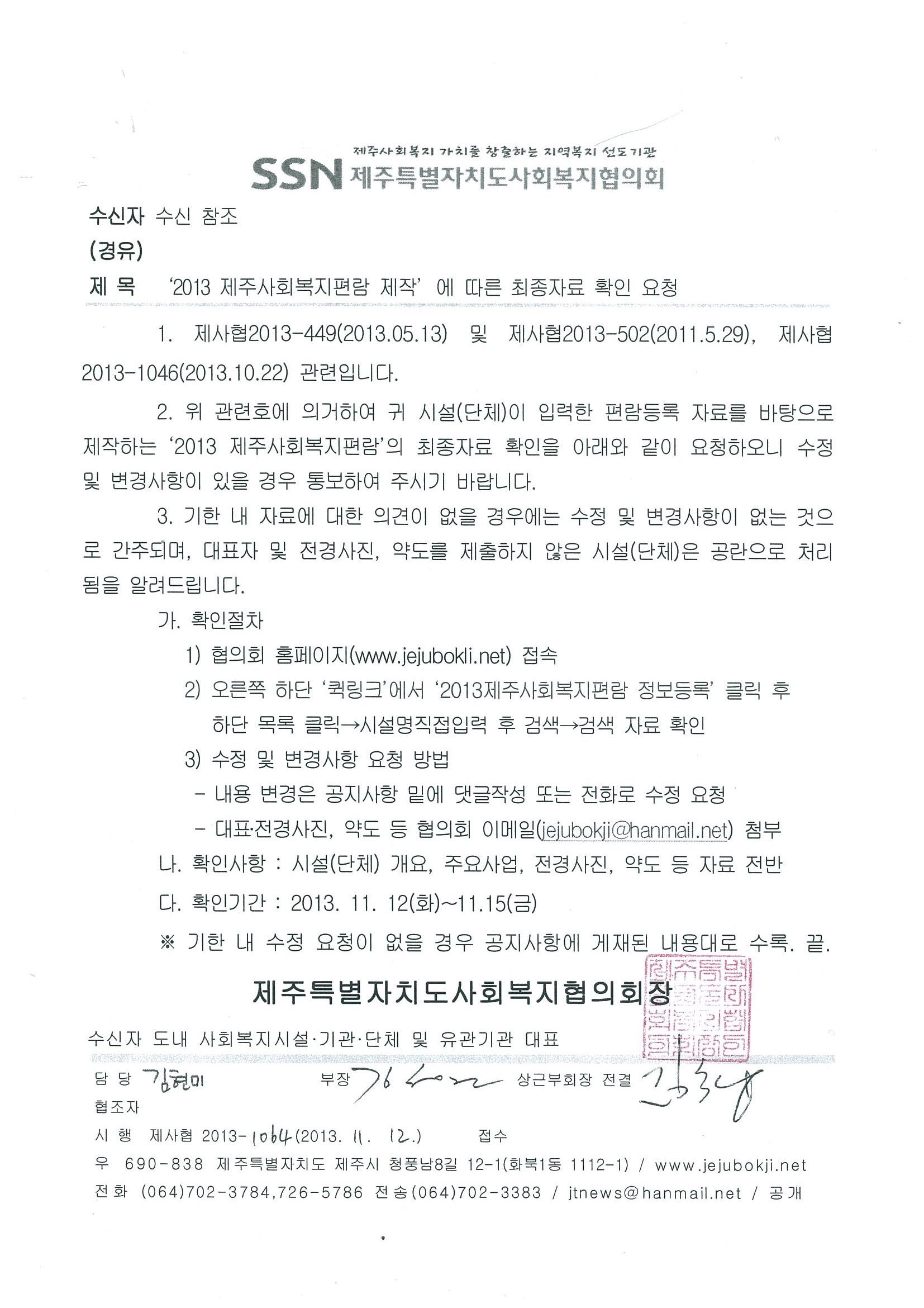 2013제주사회복지편람 제작에 따른 최종자료 확인요청