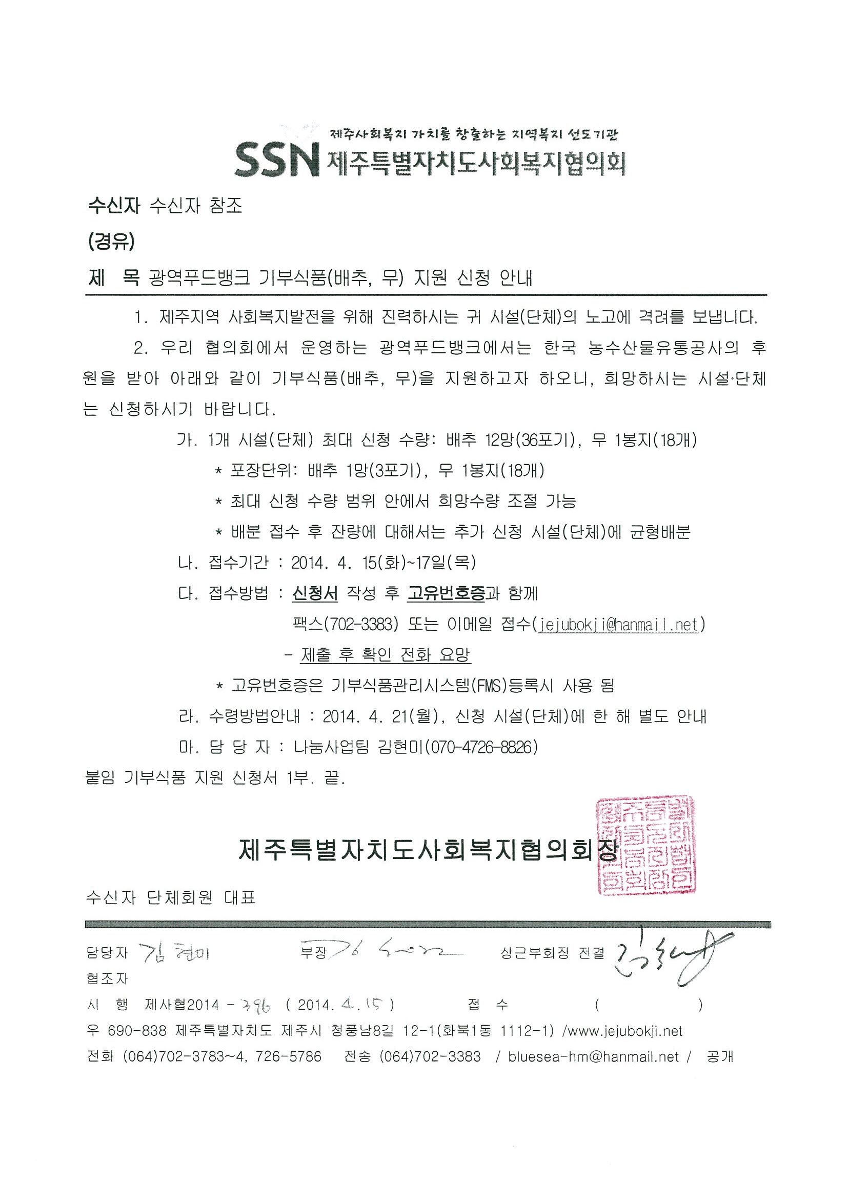 광역푸드뱅크 기부식품(배추,무) 지원 신청 안내