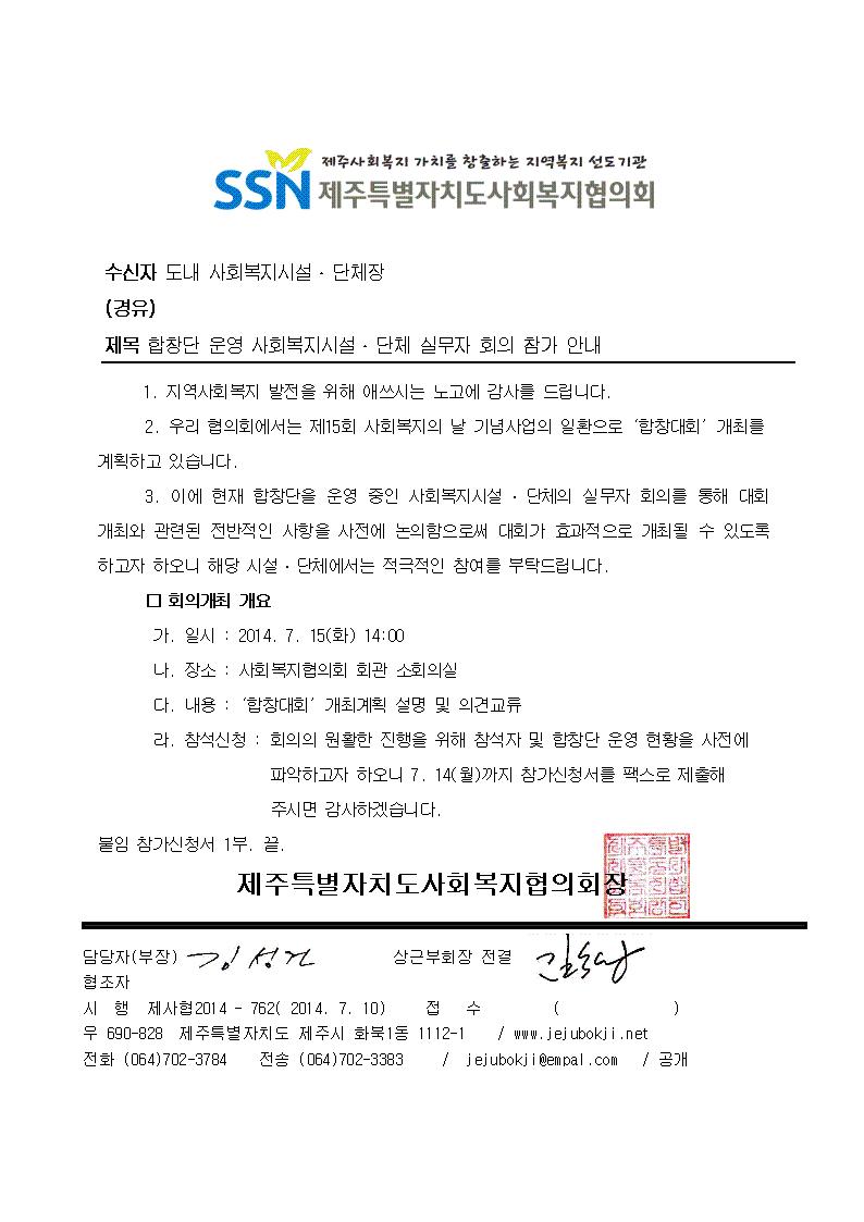 합창단 운영 시설(단체) 실무자 회의 참석 안내