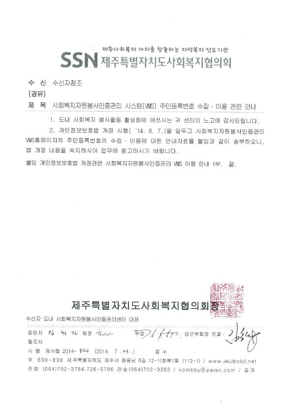 사회복지자원봉사인증관리 시스템(VMS) 주민등록번호 수집·이용 관리 안내