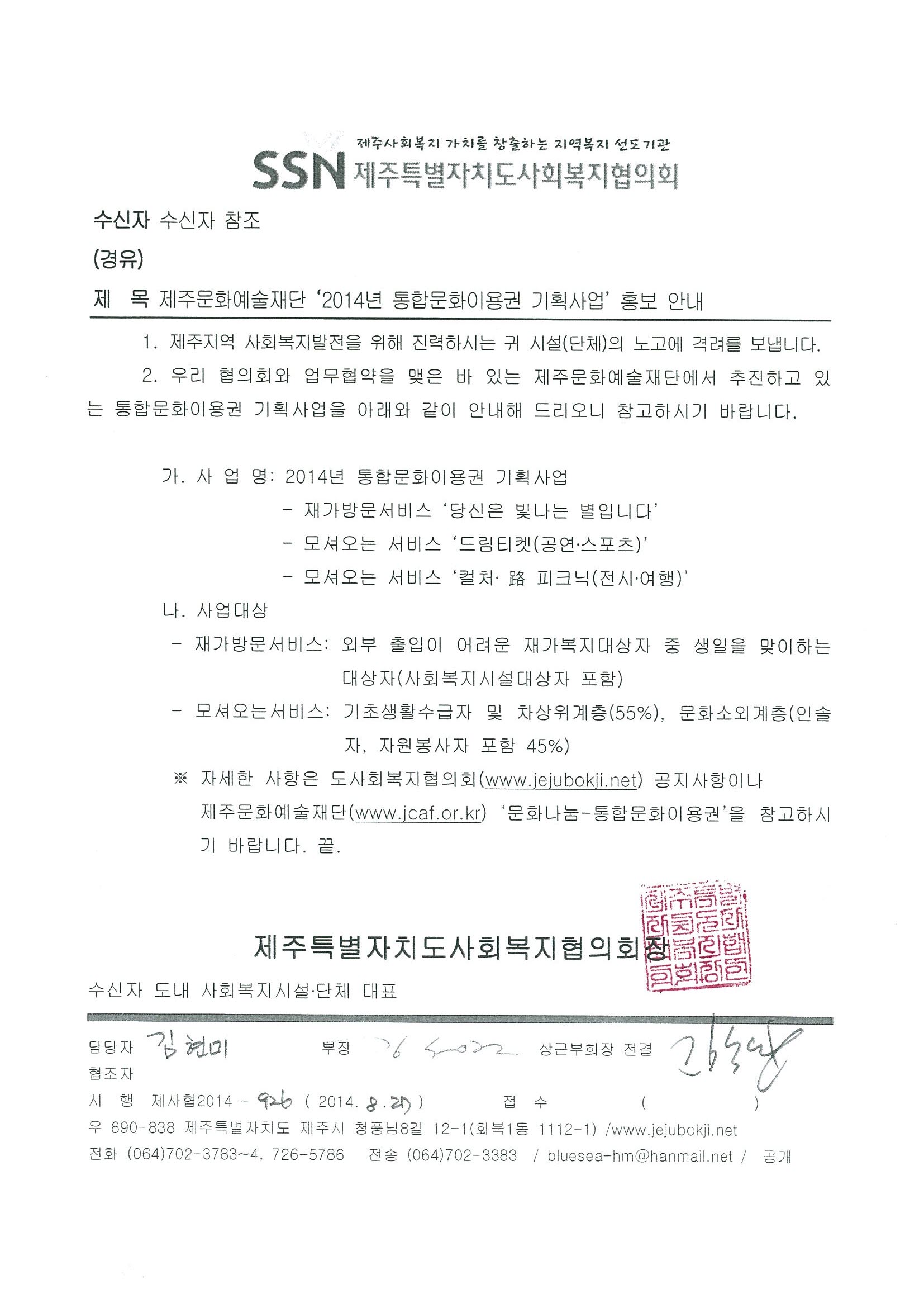 제주문화예술재단 '2013년 통합문화이용권 기획사업' 홍보 안내