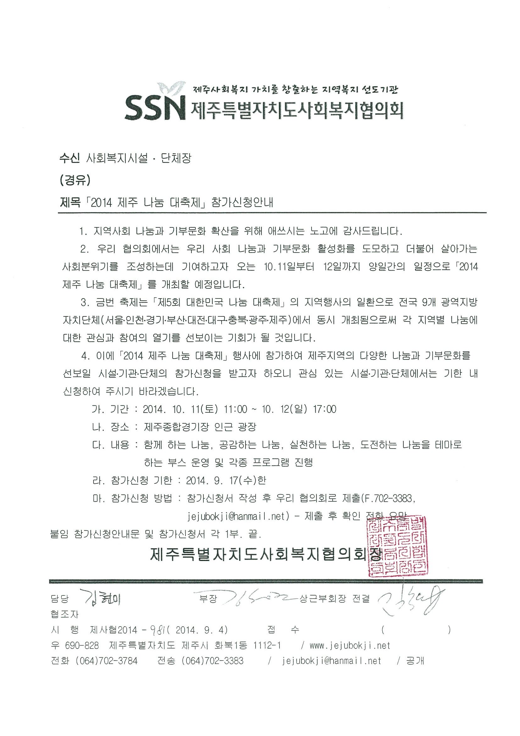 2014 제주 나눔 대축제 참가신청 안내
