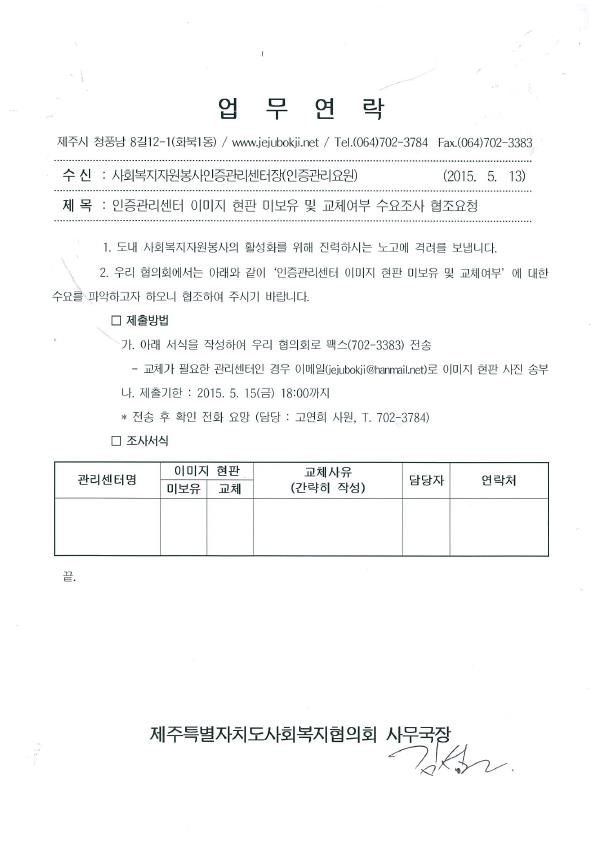 인증관리센터 이미지 현판 미보유 및 교체여부 수요조사 협조요청