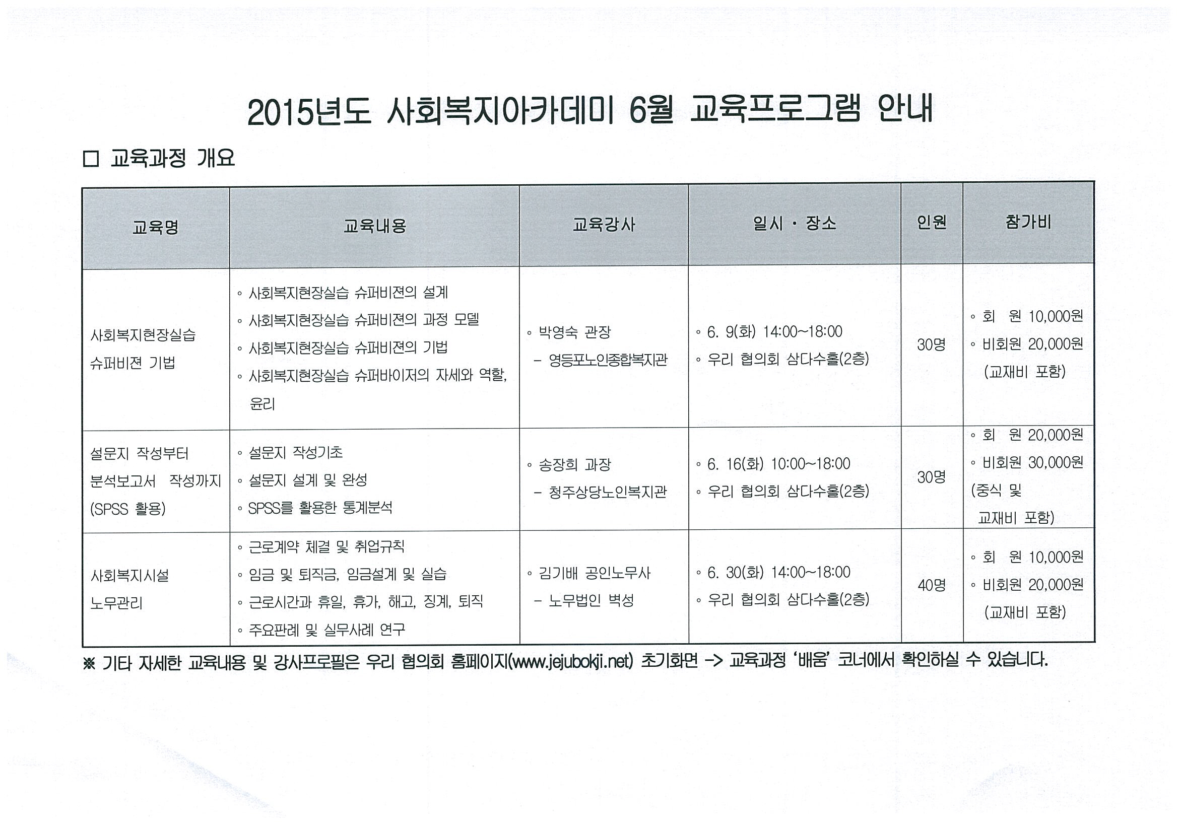 2015년도 사회복지아카데미 6월 교육프로그램 참가 안내