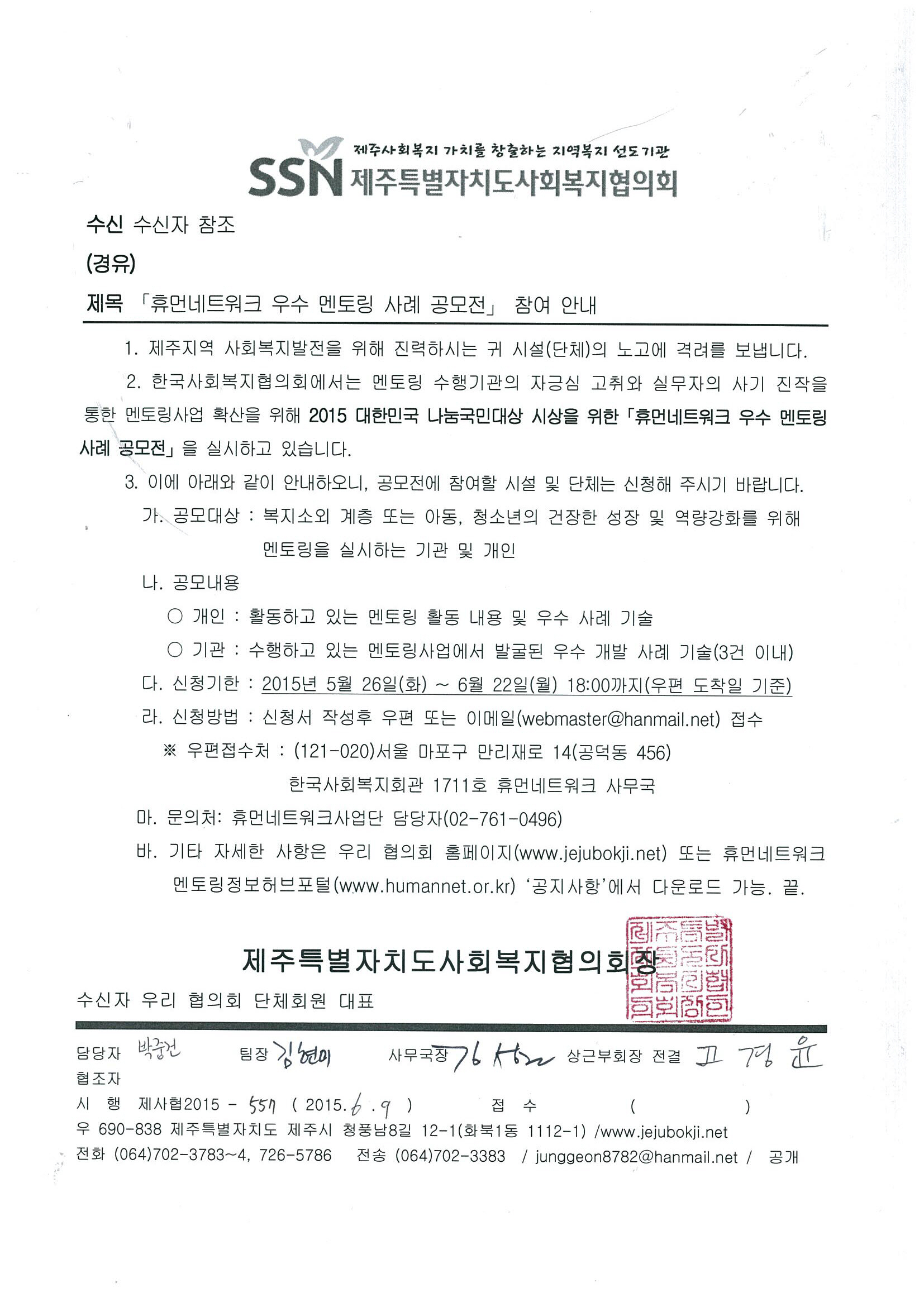 「휴먼네트워크 우수 멘토링 사례 공모전」 참여 안내