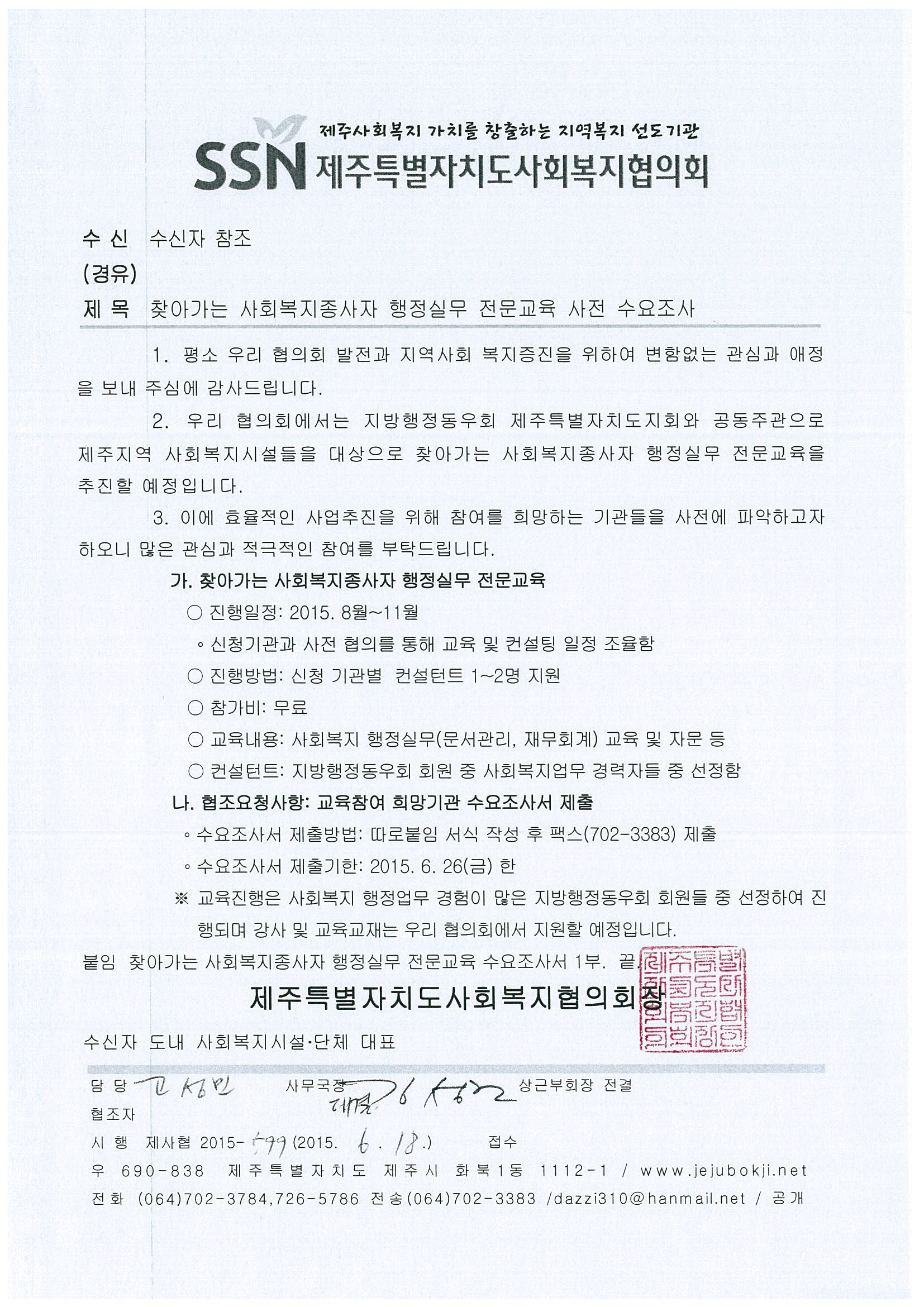 찾아가는 사회복지종사자 행정실무 전문교육 사전 수요조사