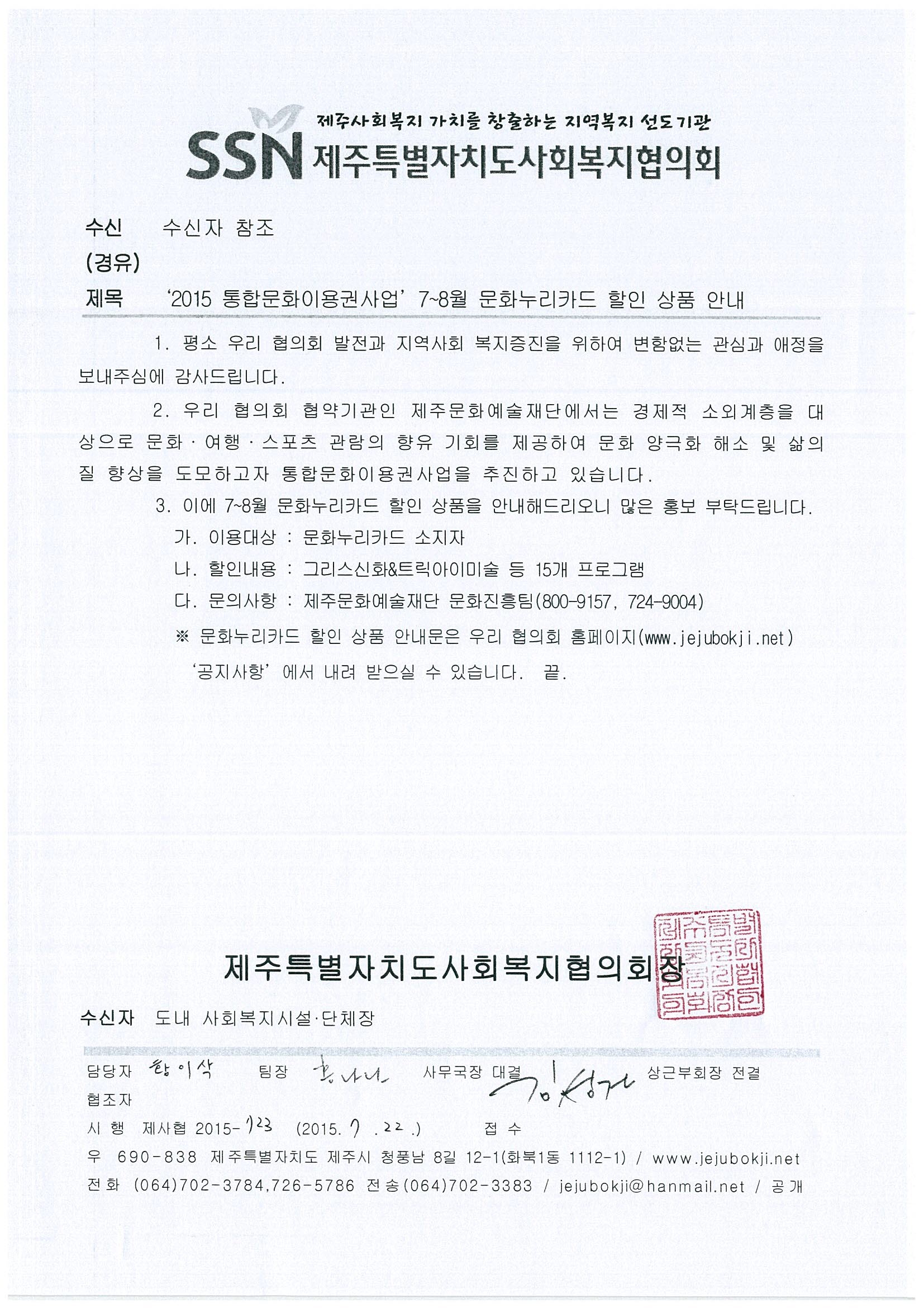 '2015 통합문화이용권사업' 7~8월 문화누리카드 할인 상품 안내