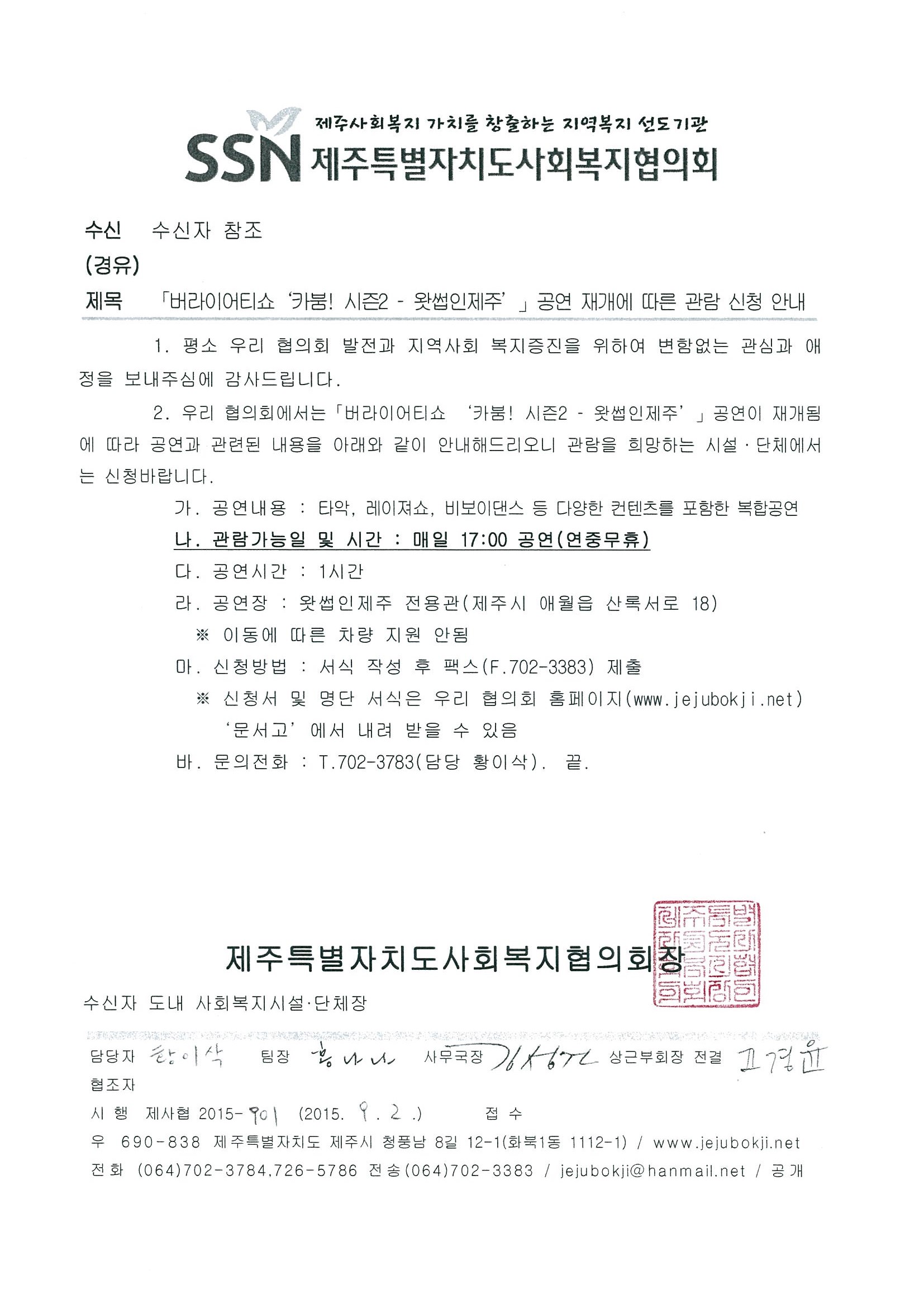 「버라이어티쇼 '카붐! 시즌2 - 왓썹인제주'」공연 재개에 따른 관람 신청 안내