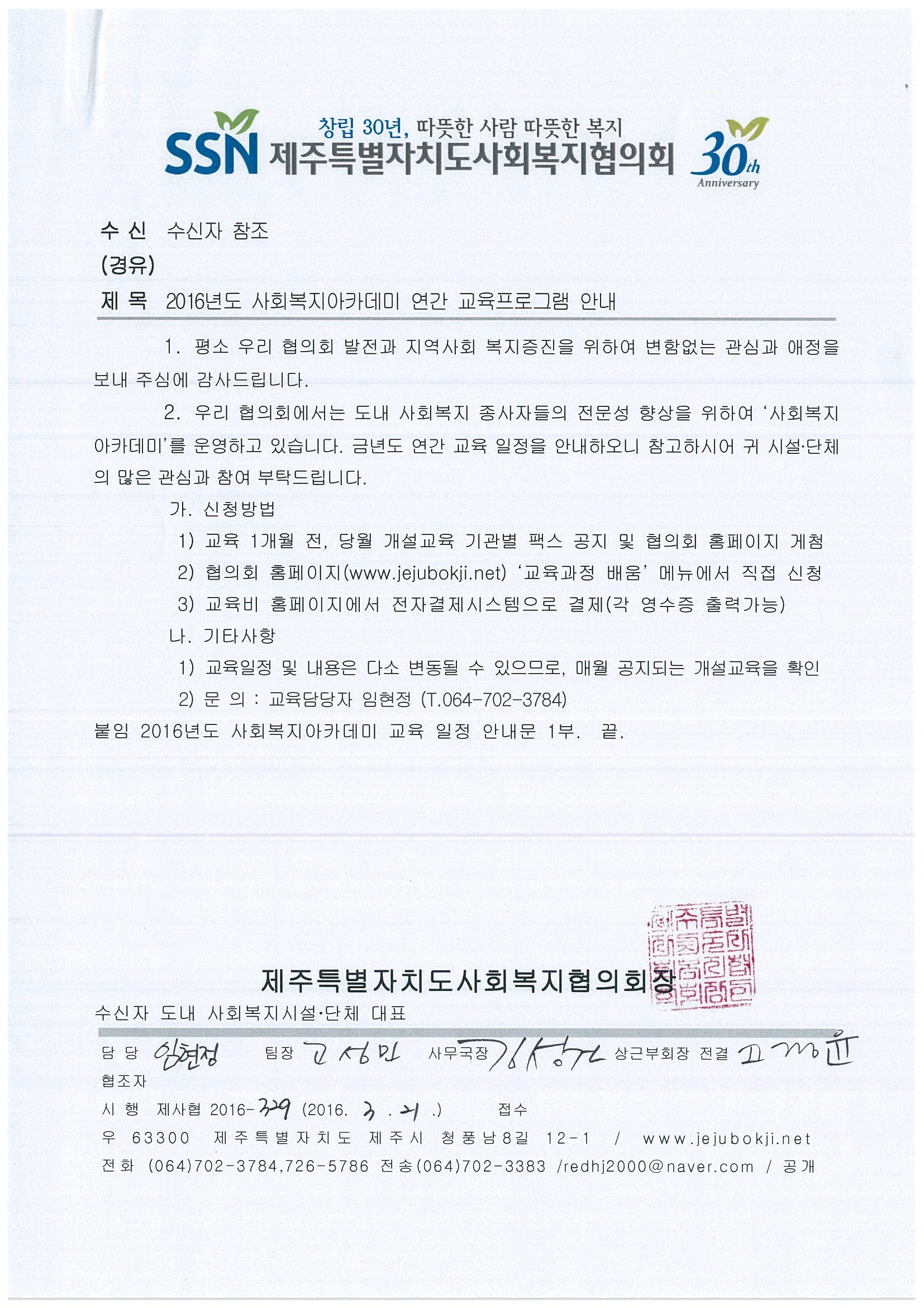 2016년도 사회복지아카데미 연간 교육프로그램 안내