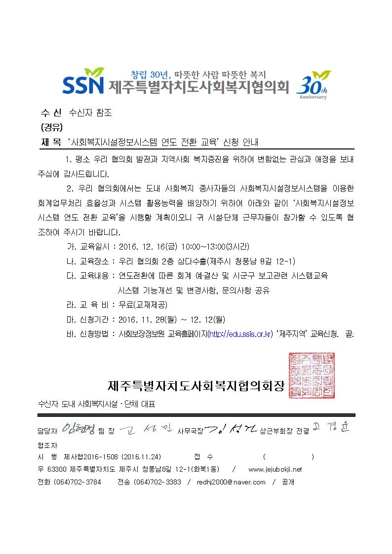 사회복지시설정보시스템 연도 전환 교육 신청 안내