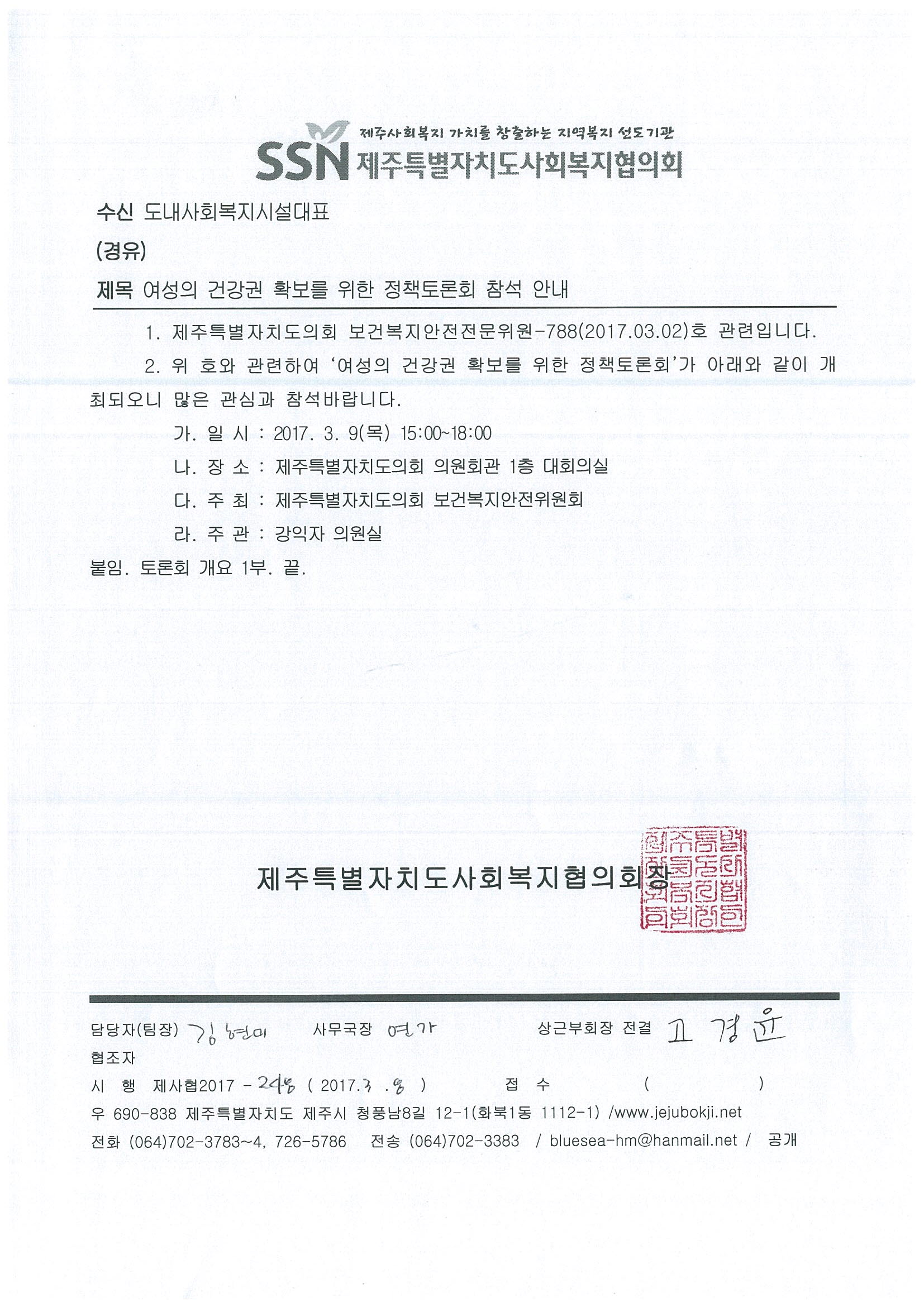 여성의 건강권 확보를 위한 정책토론회 참석 안내