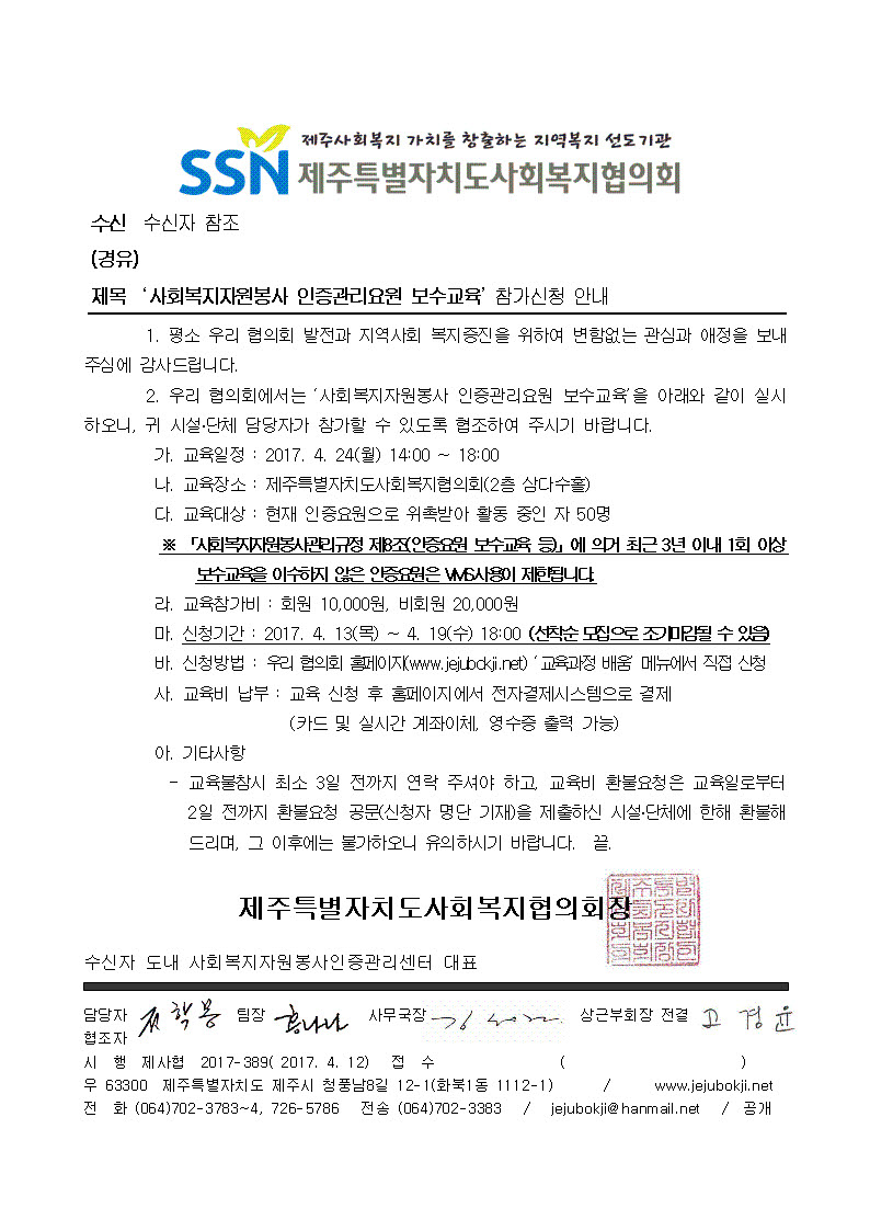 ‘사회복지자원봉사 인증관리요원 보수교육’ 참가신청 안내