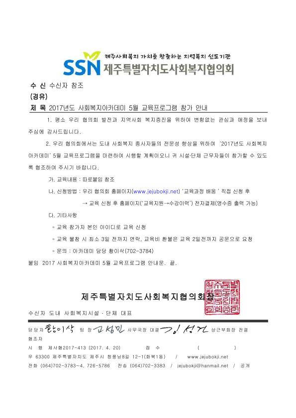 2017년 5월 사회복지아카데미 교육프로그램 참가 안내