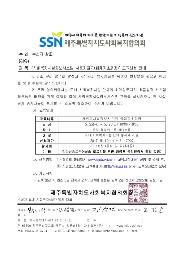 2분기 사회복지시설정보시스템 교육 안내(회계기초)