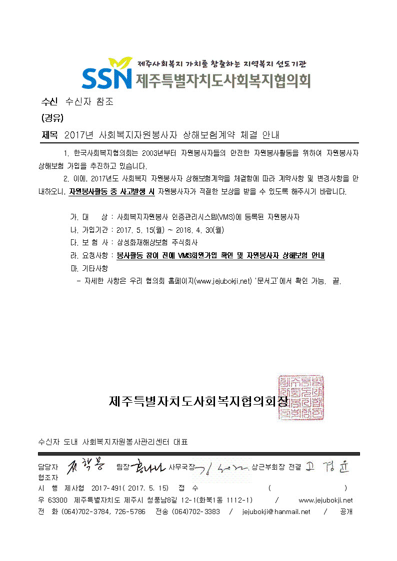 2017 자원봉사자 상해보험 안내