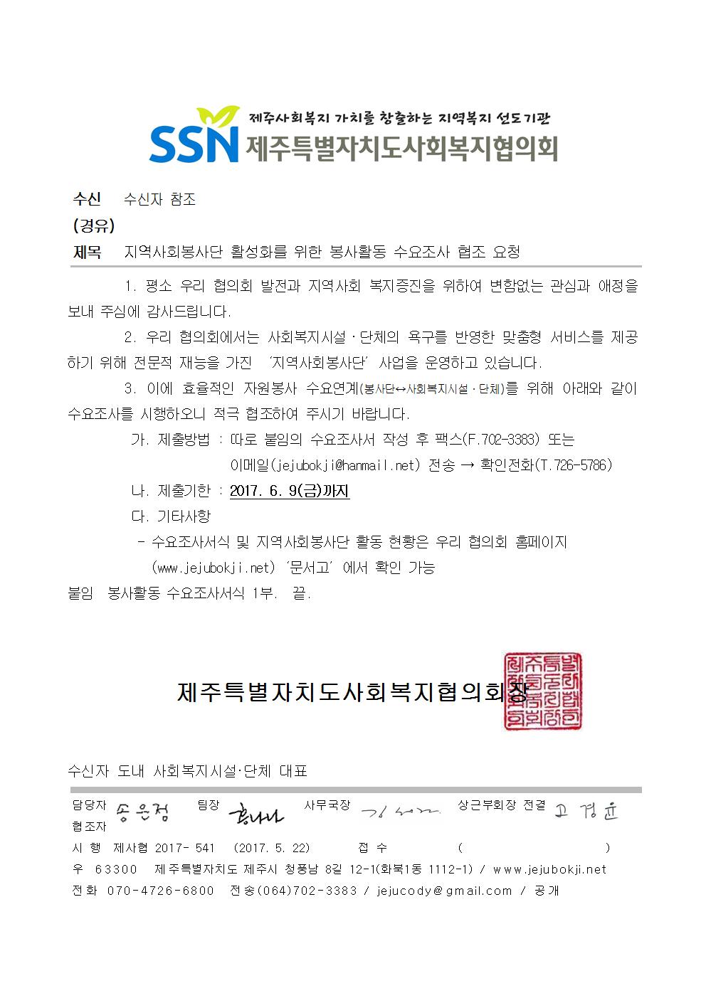 지역사회봉사단 활성화를 위한 봉사활동 수요조사 협조 요청