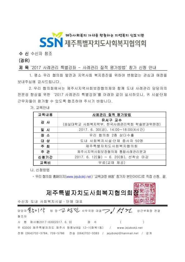 '2017 사례관리 특별강좌-사례관리 질적 평가방법' 참가 신청 안내
