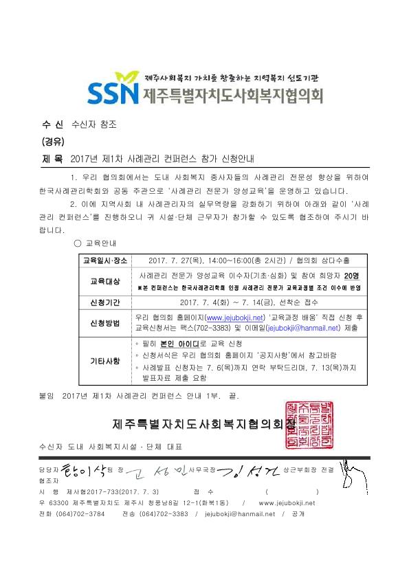 2017년 제1차 사례관리 컨퍼런스 참가 신청안내