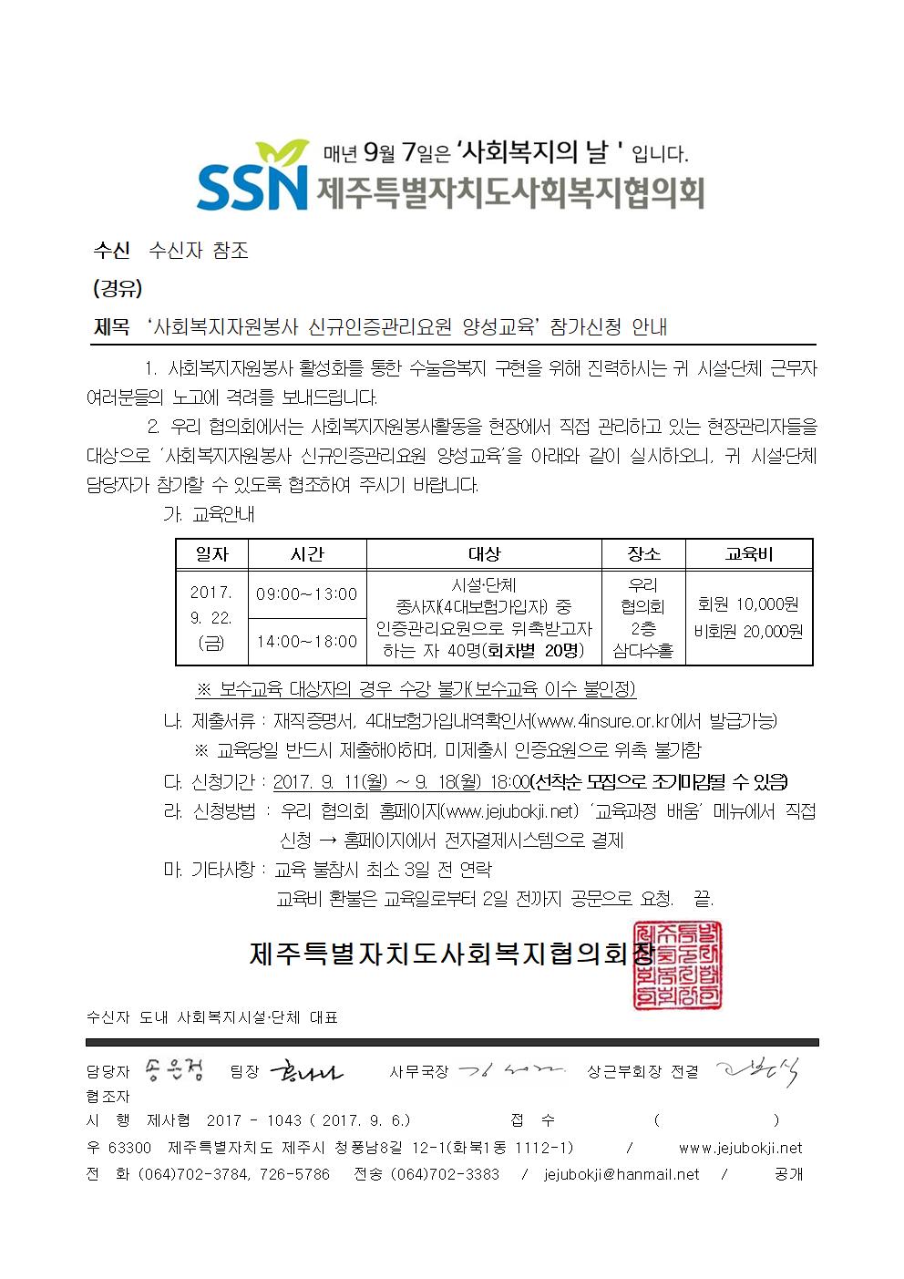 '사회복지자원봉사 신규인증관리요원 양성교육' 참가신청안내