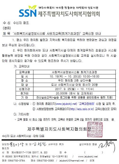 4분기 사회복지시설정보시스템 교육 안내(회계기초과정)
